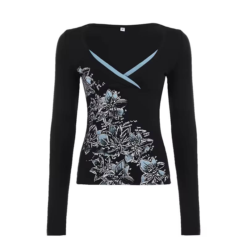 The Retro Plant Print/Floral Pattern gives it an authentic Y2K aesthetic, while the high-quality Knitted Spandex/Polyester blend fabric (210 grams) ensures a comfortable slim fit for the Autumn season.