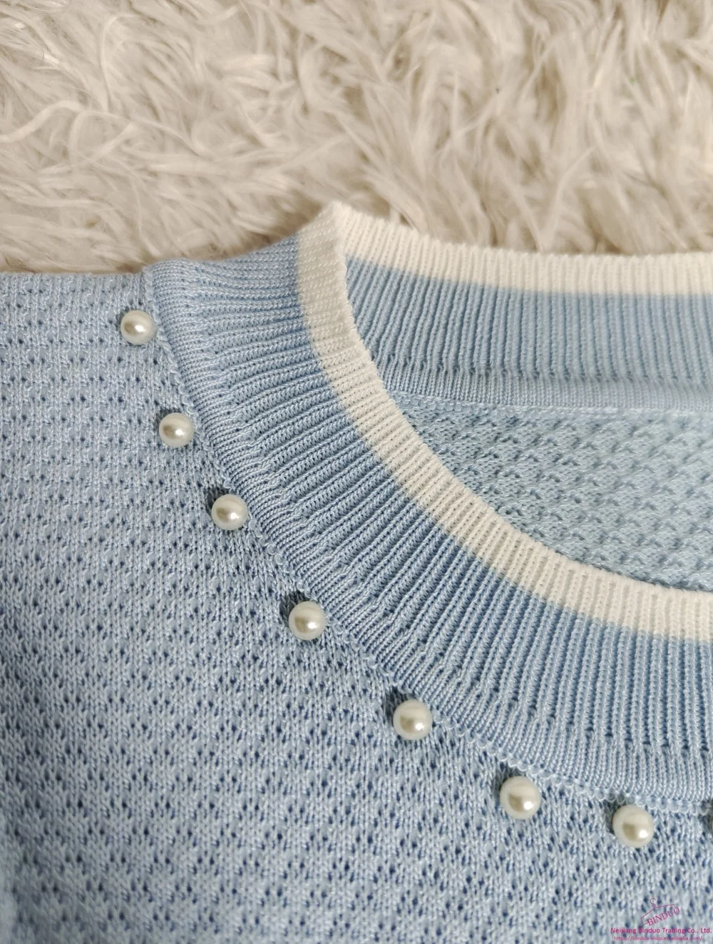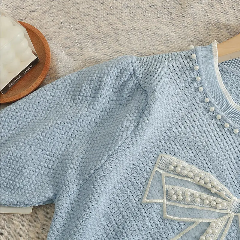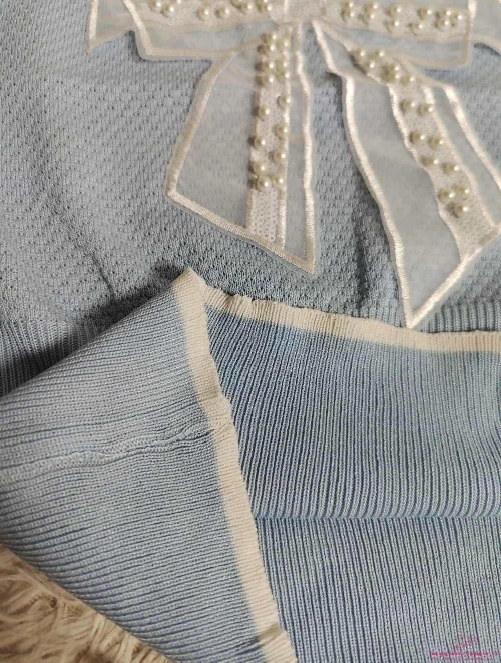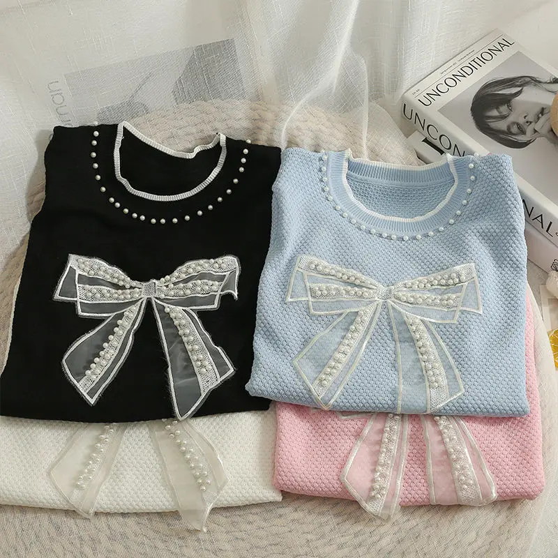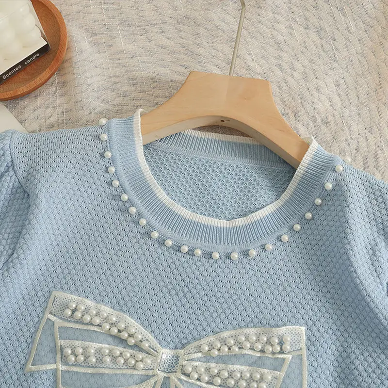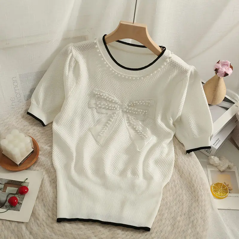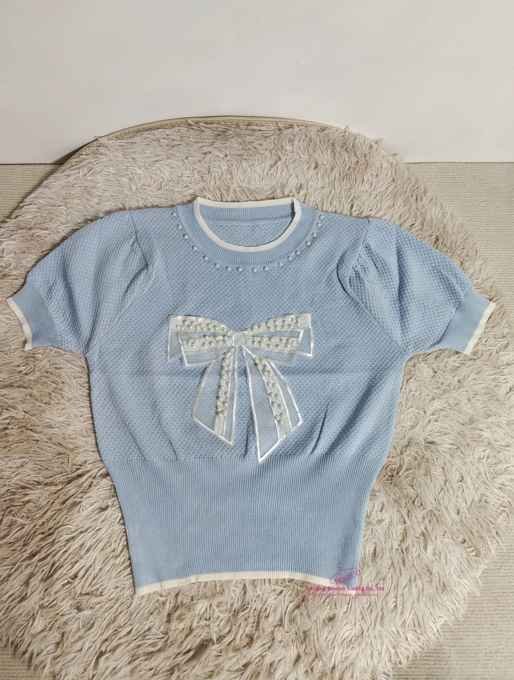 Bow Graphic Tee Knitting Tops for Women Crewneck Short-Sleeved Tee