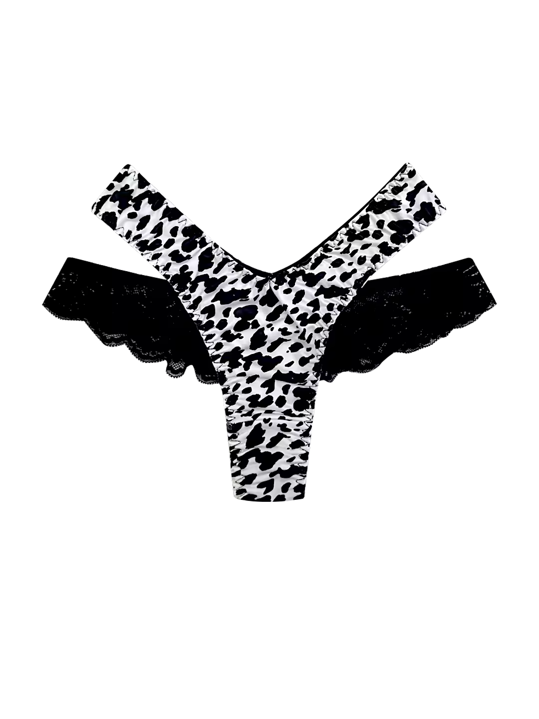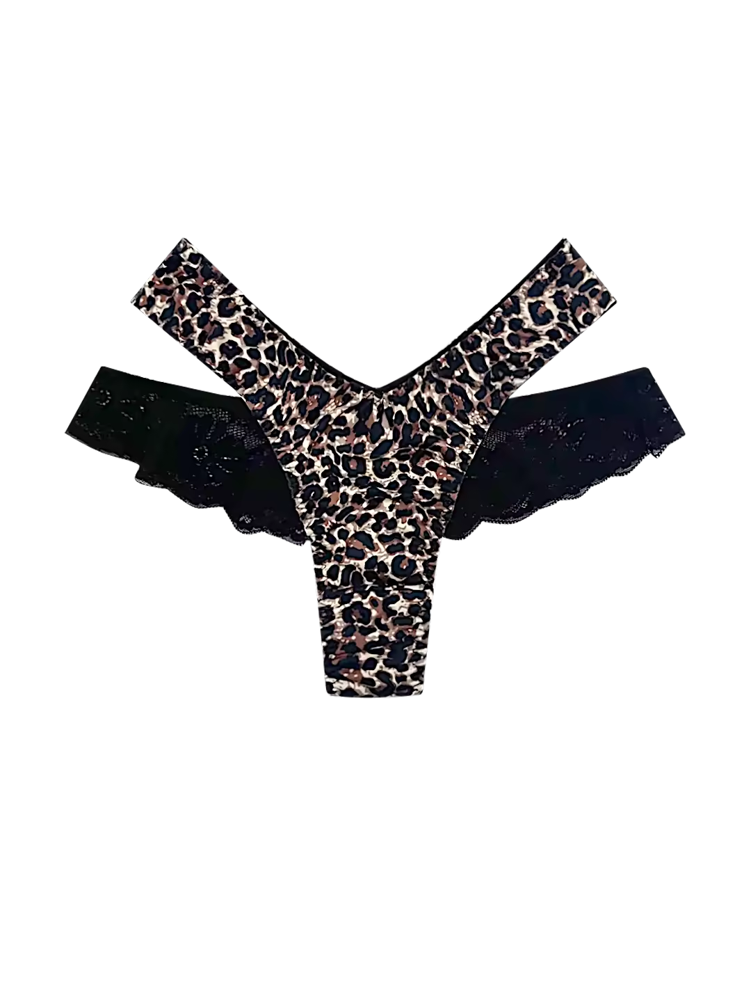 High-Cut Animal Print Thong with Contrast Lace and Satin Panels