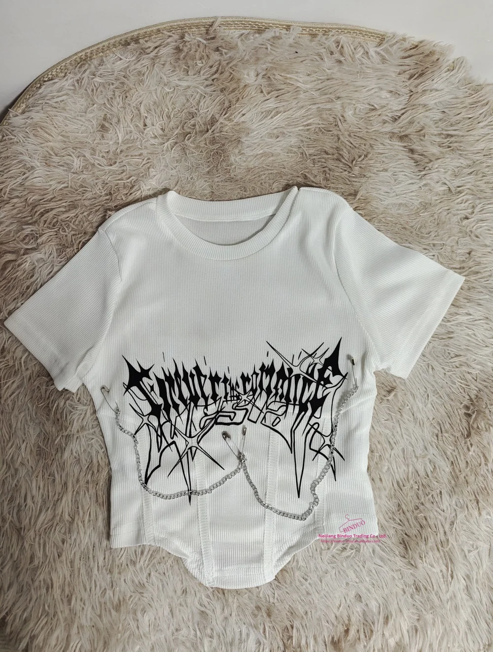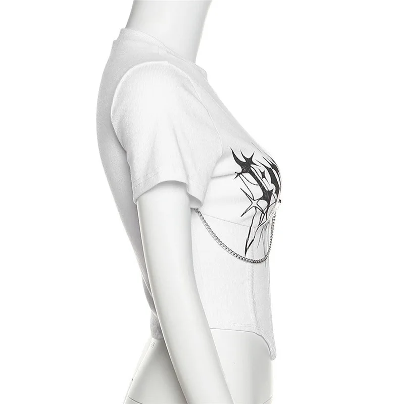 Printed round neck slim short T-shirt casual all-match ins cute age-reducing top pure American hot girls letter print