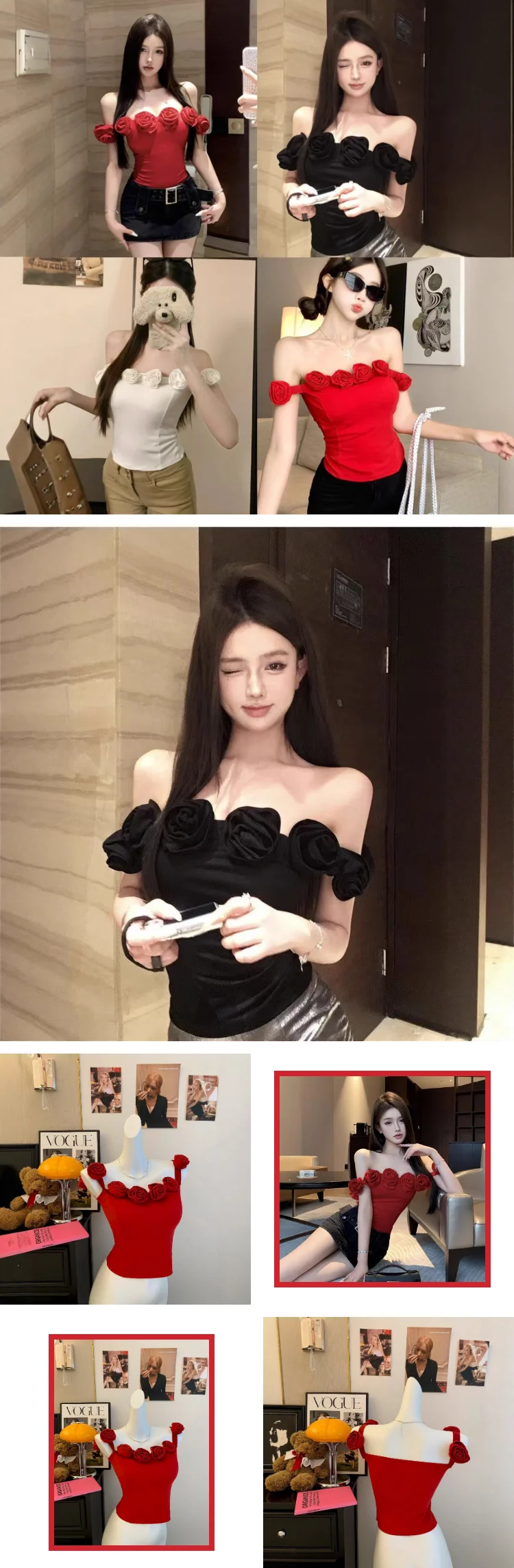 Spice Girl Short Sleeveless Strap Shoulder Neck Three-dimensional Flower Decoration Fashion Shoulder Collar Style