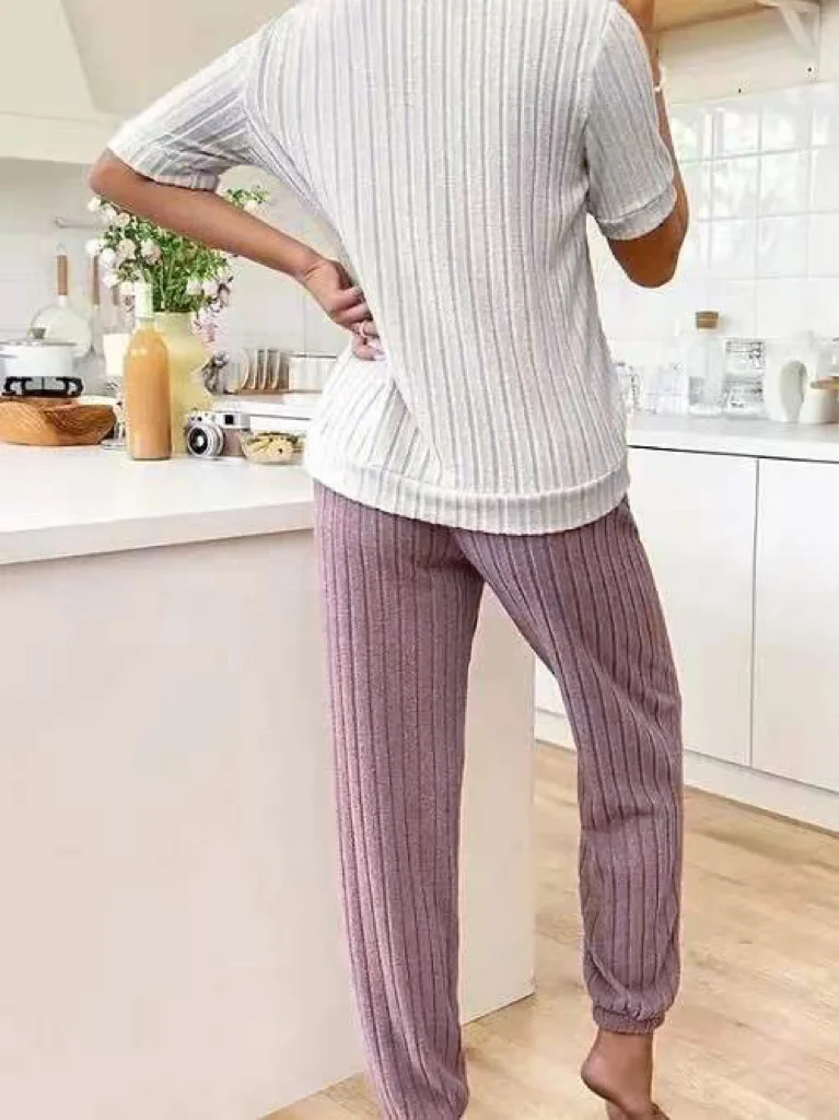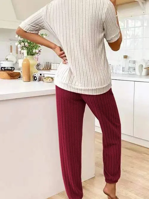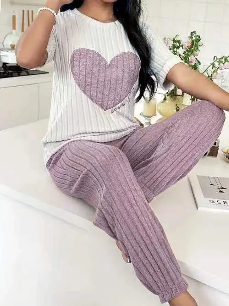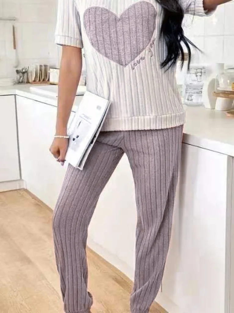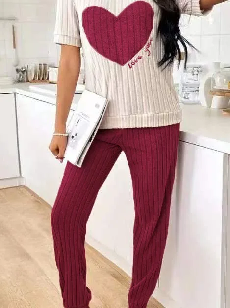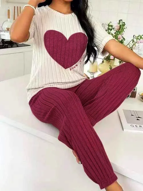 Sweet Heart Women's Satin Pajama Set Autumn New Elegant Neck Short Sleeve Long Pants Comfortable Two-Piece Home Trendy Outfit