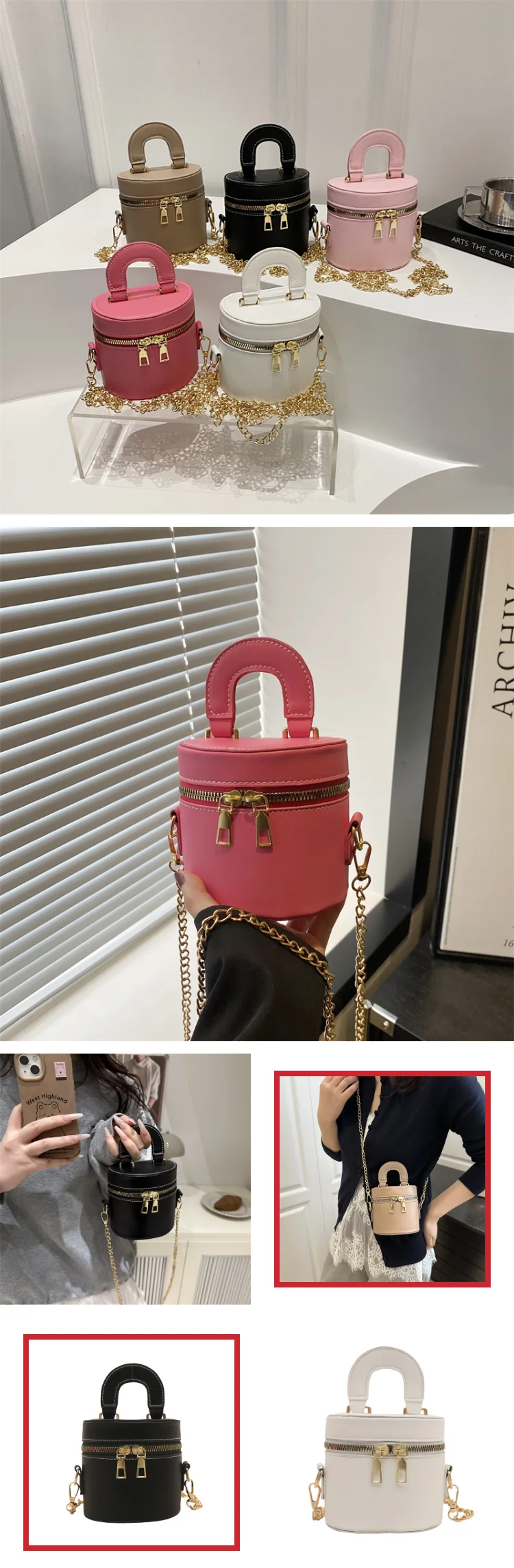 Women's High - End Mini Crossbody Bucket Bag Fashionable Beautiful Zipper Closure Handbag Casual Shoulder Handbag - Zeprah