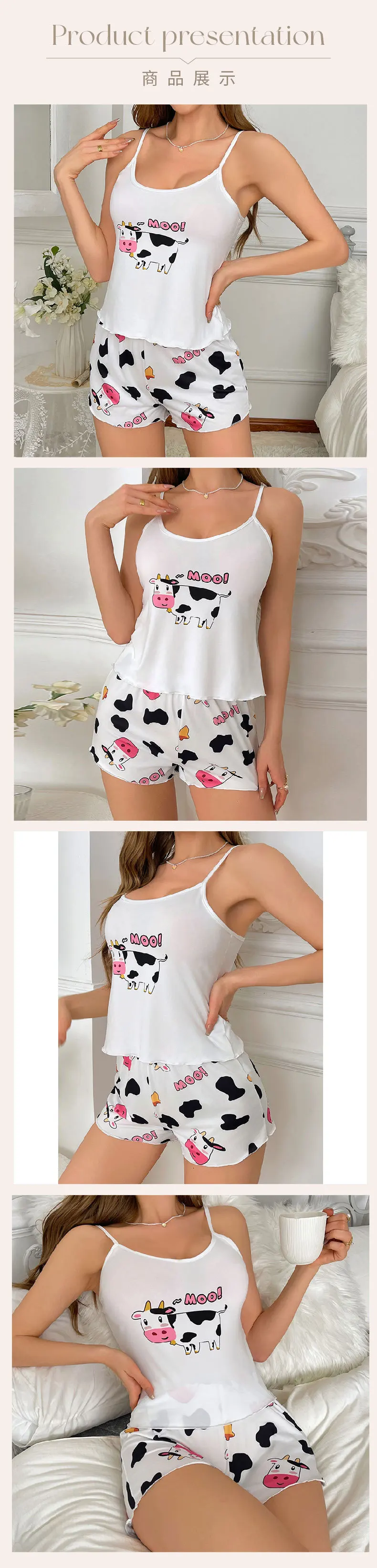 Women's Summer Casual Homewear Set New Cow Pattern Breathable Camisole Pajamas Shorts