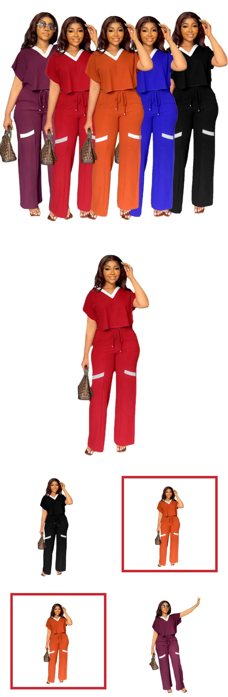 Europe and America Solid Color Casual Short-sleeved T-shirt Sports Suit Straight Pants Summer Women's 2-piece set