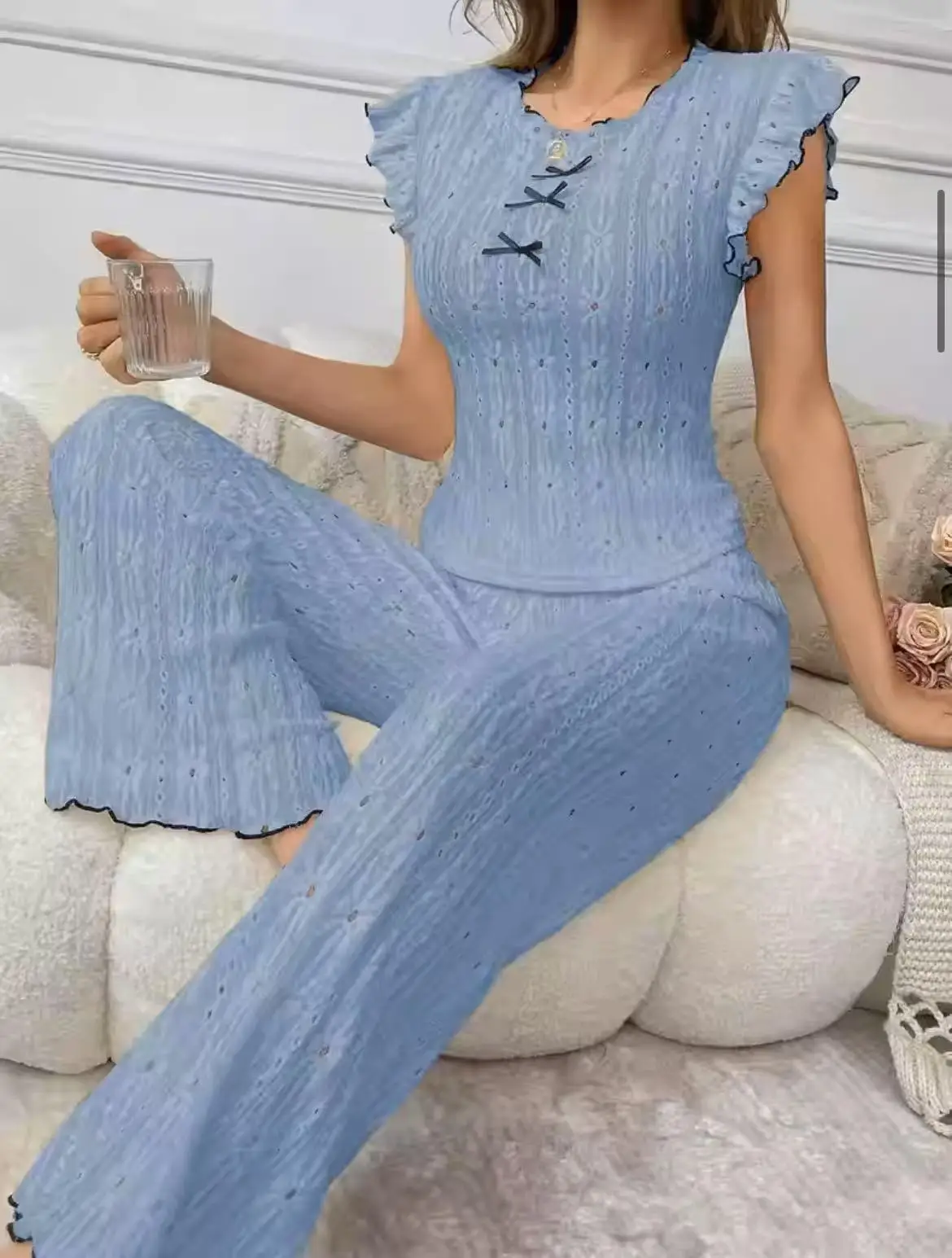 European American Style Sexy Hollow Out Strapless Women's Spandex Lace Pajamas Spring Summer High-end Homewear