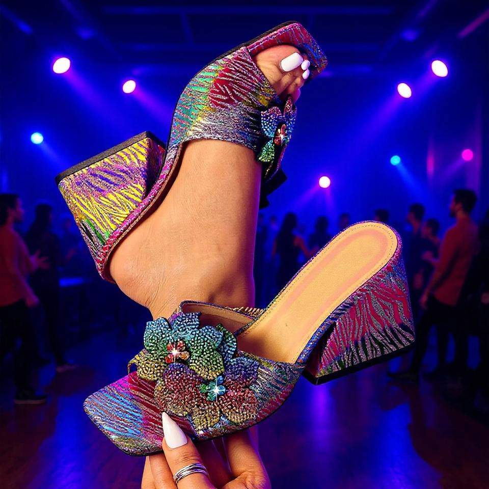 The floral embellishments add a whimsical touch to these versatile sandals, making them suitable for a wide range of occasions. Whether you're attending an upscale event or hitting the town with friends, these sandals are the perfect blend of style and comfort. The sequin sparkle adds a unique style element that's sure to elevate any ensemble. With these sandals, you're not just stepping out - you're making a statement.