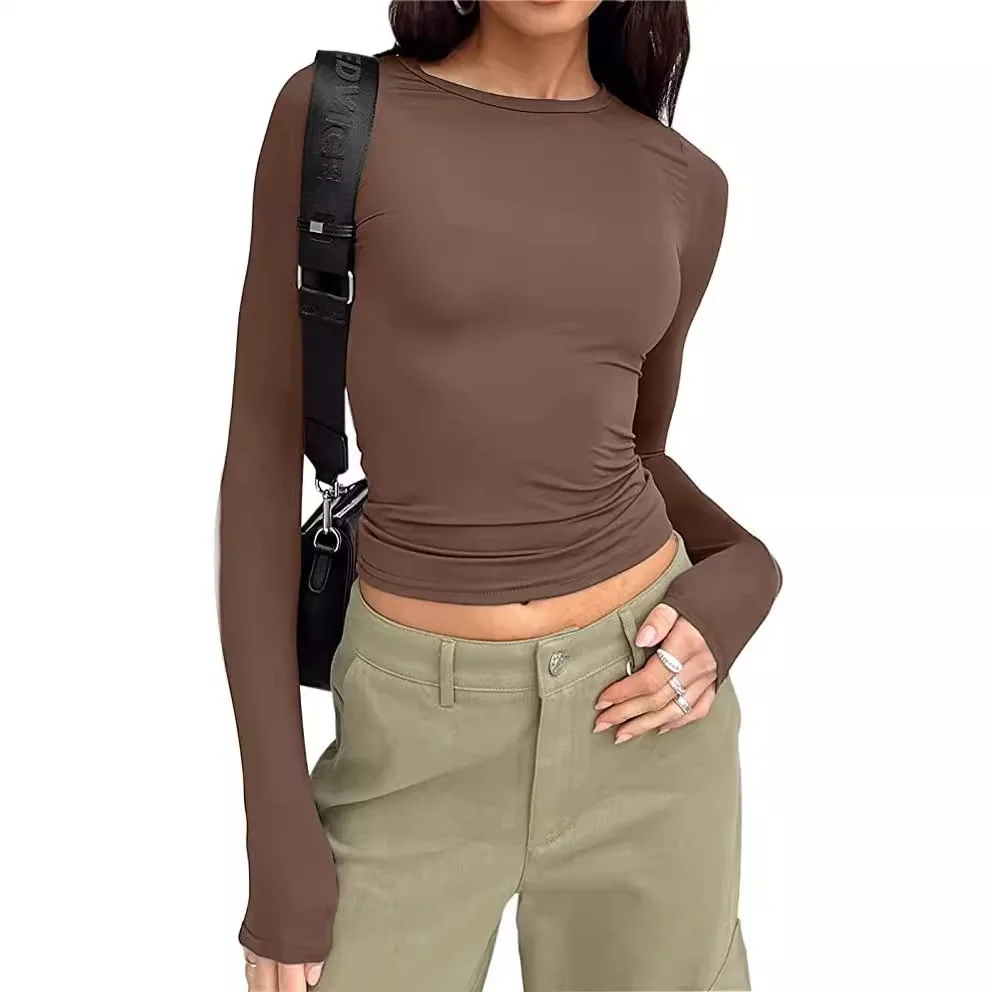 Going Out Fall Fashion Underscrubs Layer Slim Fit Y2K Tops Long Sleeve Shirts Basic Crop Tops