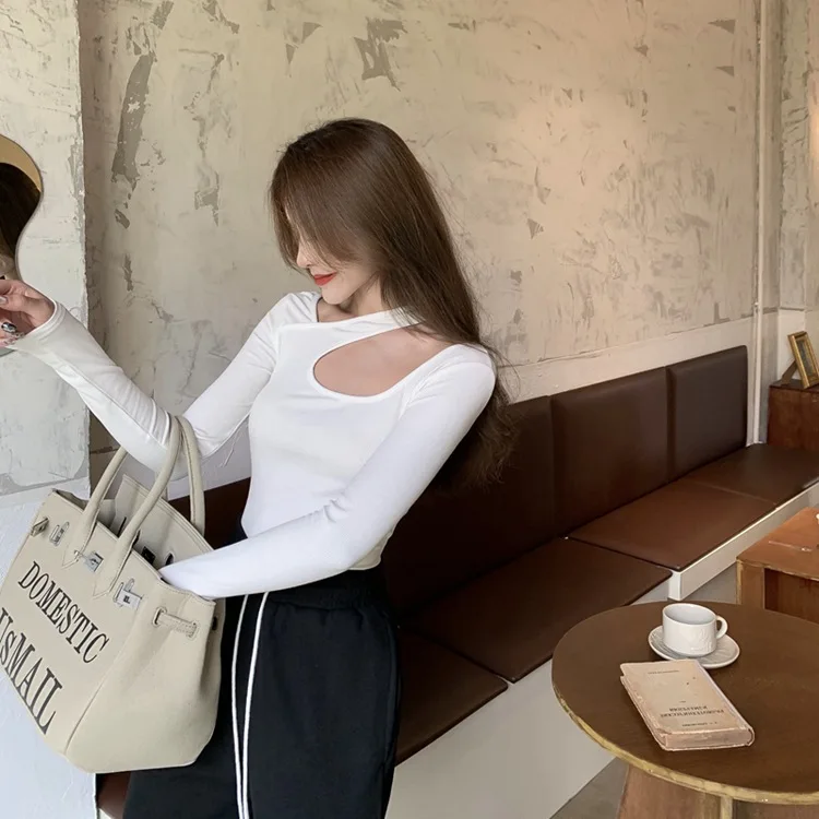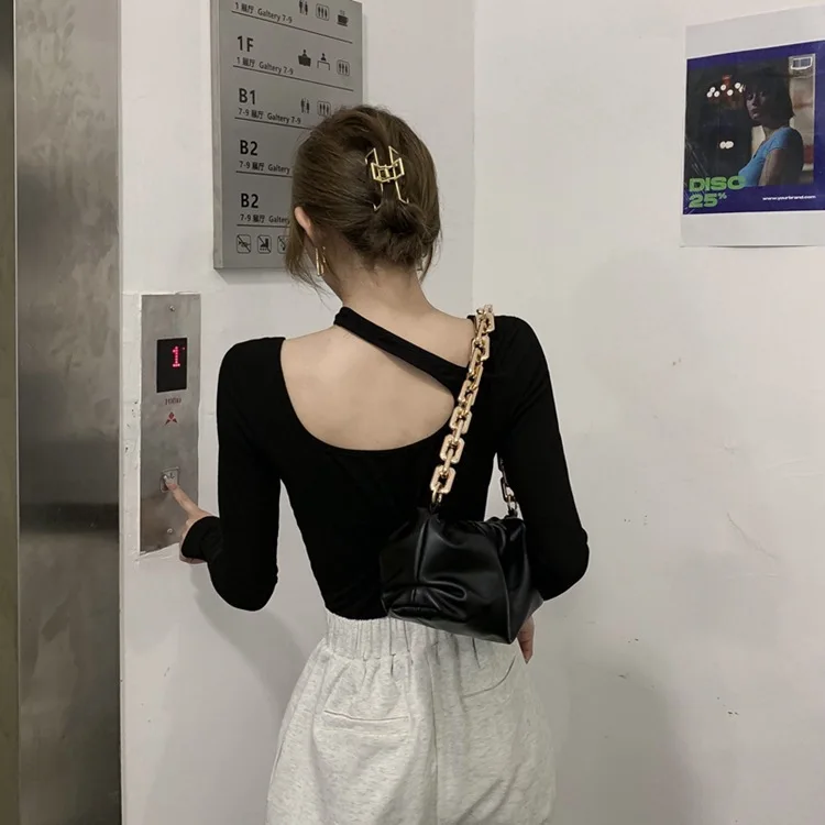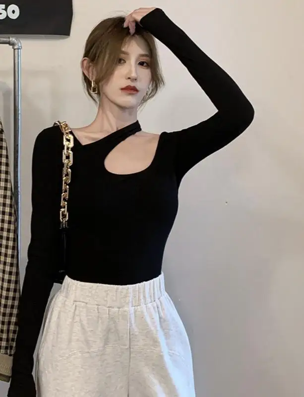 Halter Long Sleeve Base Shirt Irregularity Long-sleeved Top Classic Slim-fit Long Sleeve T-shirt