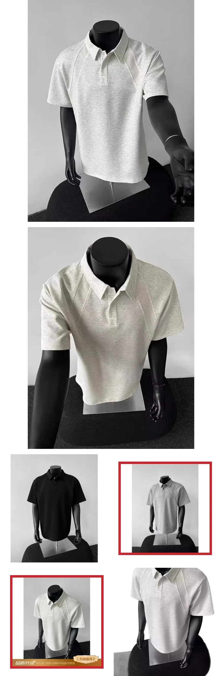 Men's Summer Short-Sleeved for Polo Shirt American Style Heavy-Weight Raglan Top Fashionable Lel Solid Pattern T-Shirt