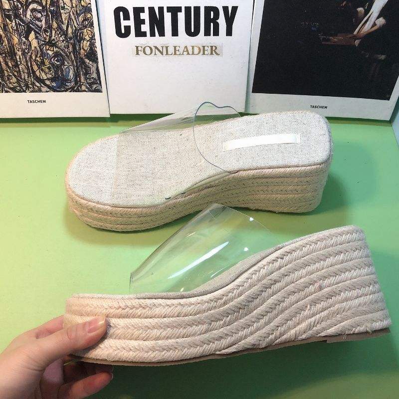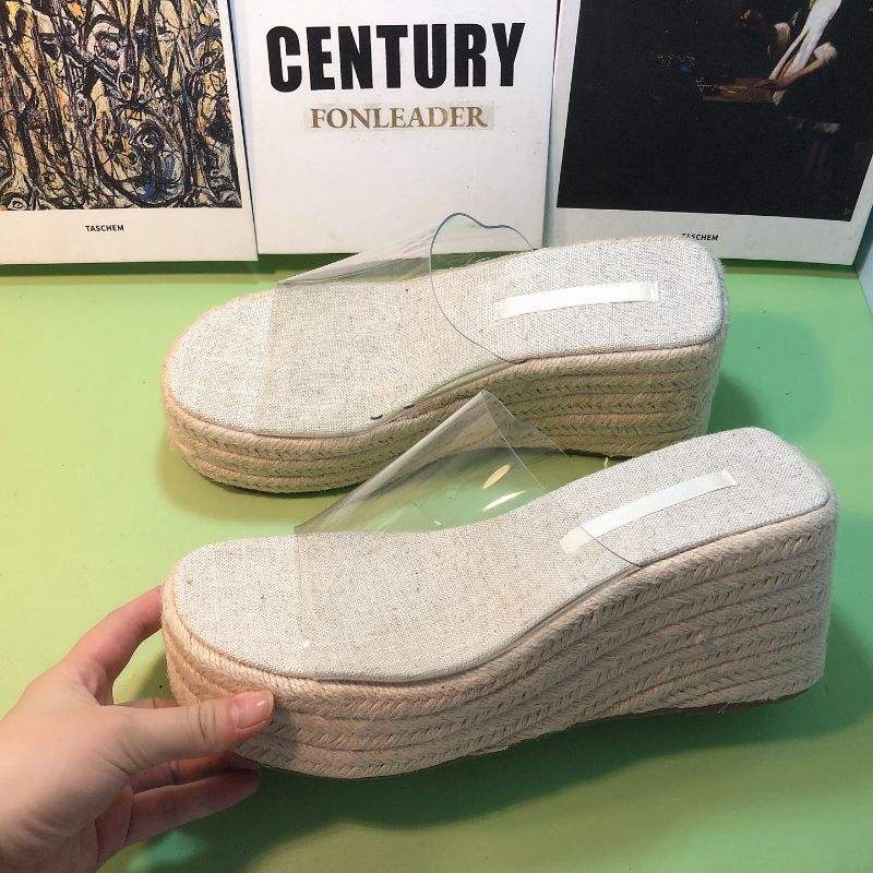 Step into style and comfort with our unique and fashionable Clear Wedge Heel Espadrille Sandals for Women. These stylish sandals, inspired by the timeless 'Mujer' style, feature a comfortable jute espadrille sole. The clear wedge heel adds a modern twist to a classic design, ensuring chic sophistication with every step. Ideal for day-to-night wear, these sandals are a must-have addition to your summer wardrobe. In addition to style, the 2024 model prioritizes comfort. The platform design reduces foot fatigue, making these sandals perfect for both casual and formal occasions. The slipper style ensures easy wearability, while the high-quality materials guarantee durability. With these sandals, you don't have to choose between style and comfort - you can have it all. Get ready to turn heads with these versatile and stylish women's platform sandals.
