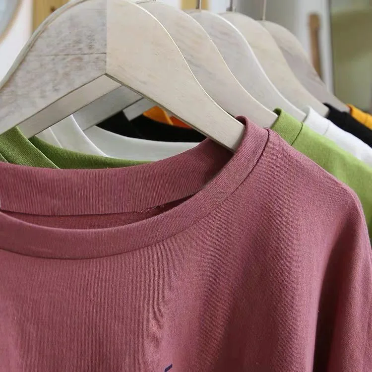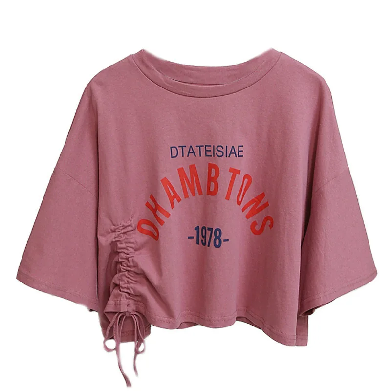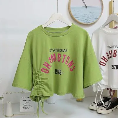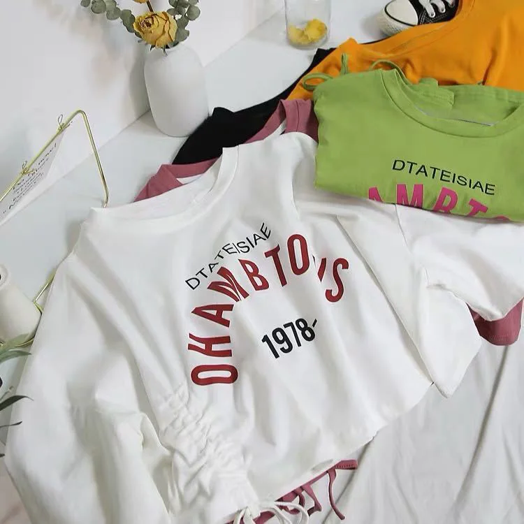 Printed round neck slim short T-shirt casual all-match ins cute age-reducing top pure American hot girls letter print