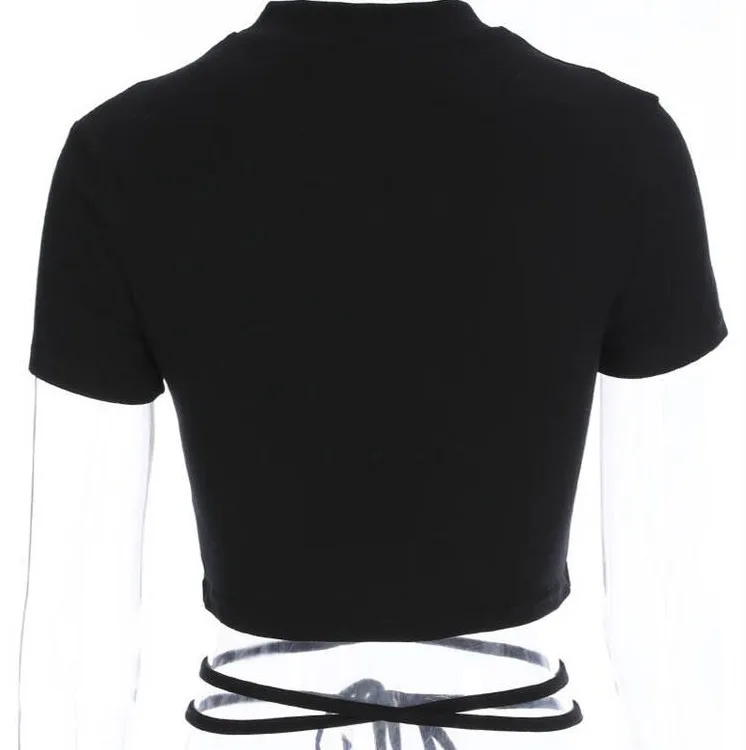 Printed round neck slim short T-shirt casual all-match ins cute age-reducing top pure American hot girls letter print