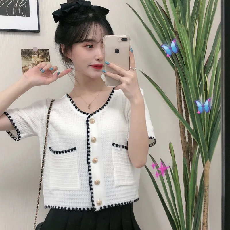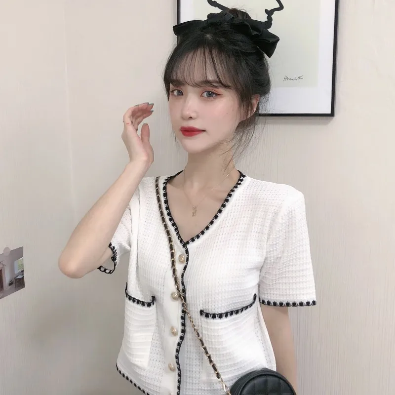 Versatile Tops for Women Casual Popular Women's Clothing Knitted Short Sleeved Tee
