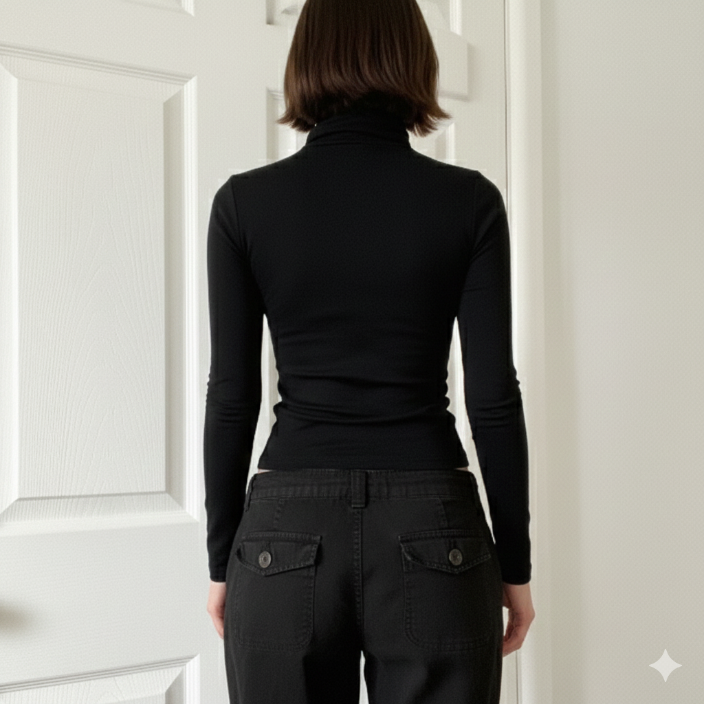 Crafted from a substantial 260-gram Spandex / Polyester Knitted fabric with a great Stretch Knit quality, it offers a comfortable Slim Fit silhouette and a Full Sleeve length. The classic Turtleneck collar and Solid color pattern (achieved via Plain Dyed technique) make it a versatile Basic for layering under sweaters or jackets.