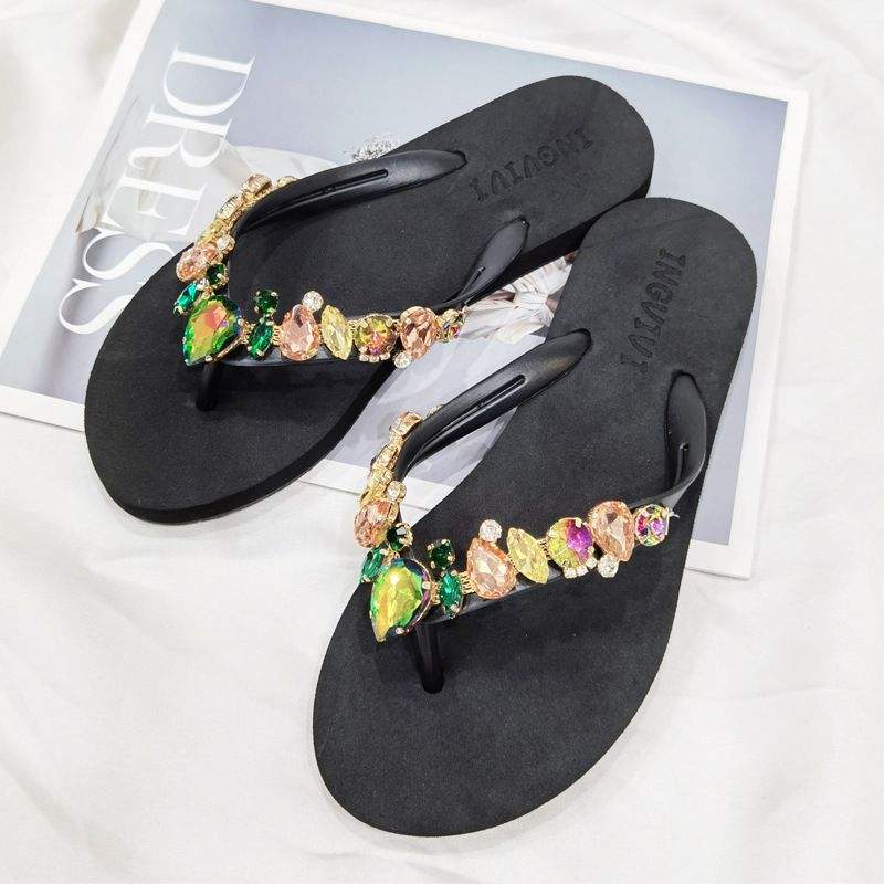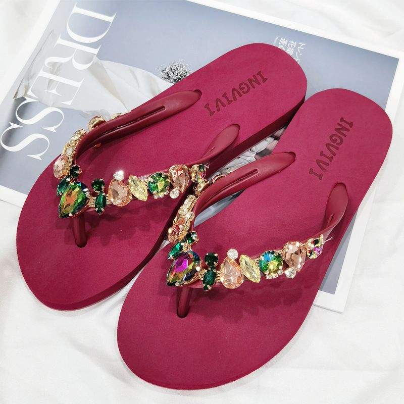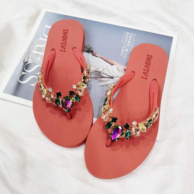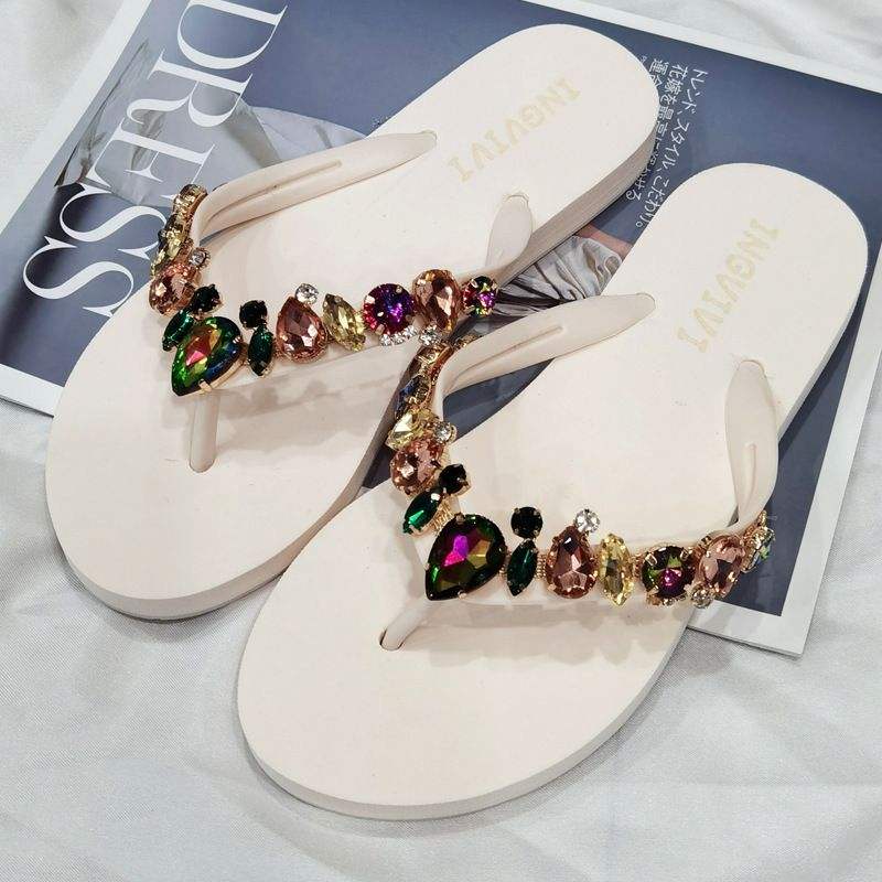 Experience the perfect blend of style, comfort, and sophistication with our Women's Candy-Colored Diamond Summer Beach Flip Flops. These high sandals, featuring an alluring open-toe design, will surely add a touch of sparkle to your summer wardrobe. Dazzling candy-colored diamonds are beautifully embedded on the straps, making these flip flops a head-turner. Its soft white color effortlessly matches any outfit, making it a must-have for your summer outings.