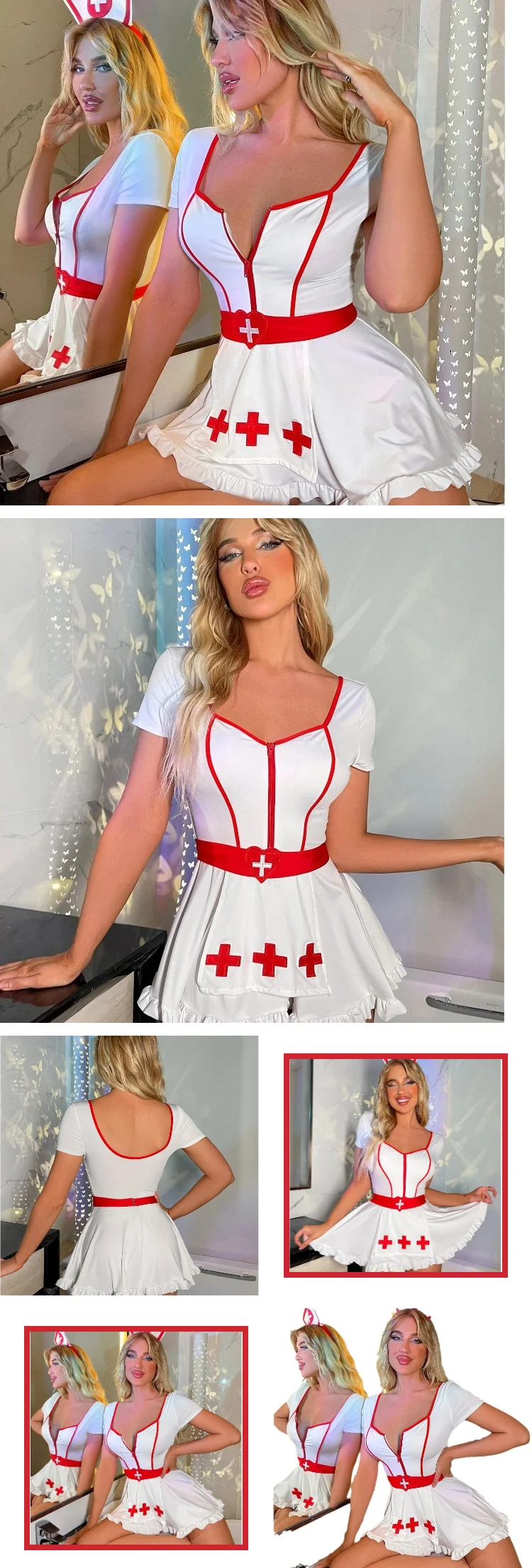 Women's Sexy Lingerie with Hat Adult Cosplay Nurse Sexy Costume Uniform