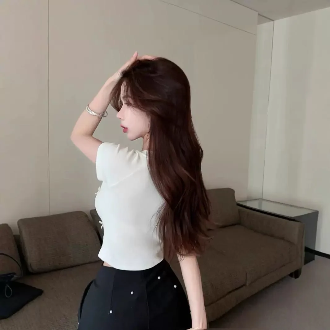 Printed round neck slim short T-shirt casual all-match ins cute age-reducing top pure American hot girls letter print