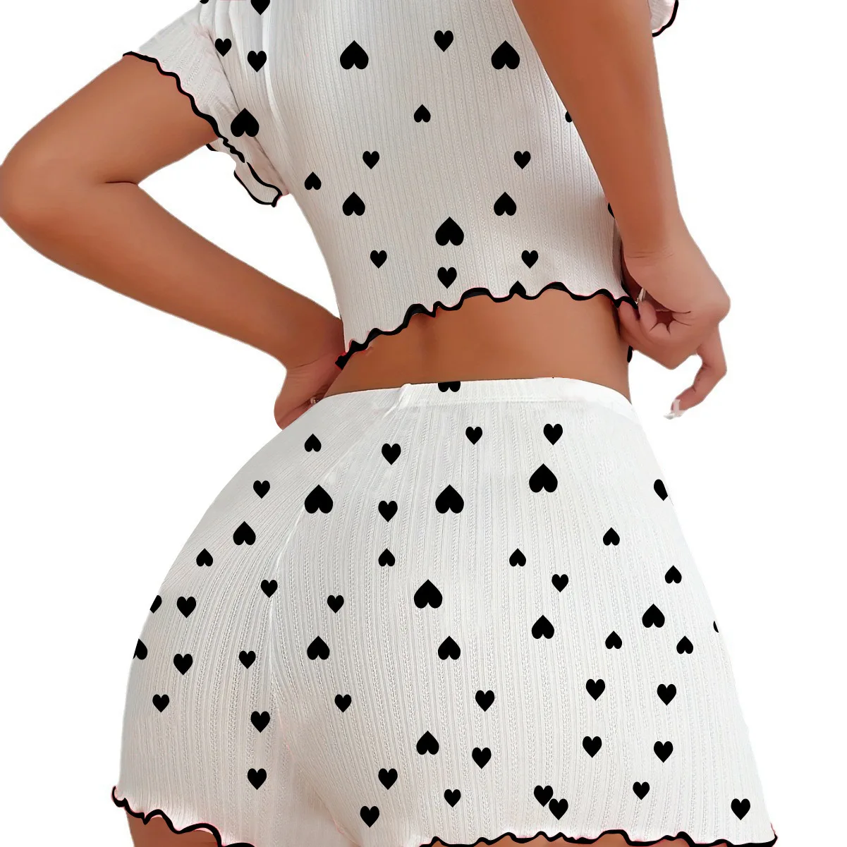 European American Jacquard Ribbed Shorts Women's Short-Sleeved Pajama Set Heart Pattern Can Be Worn Loungewear