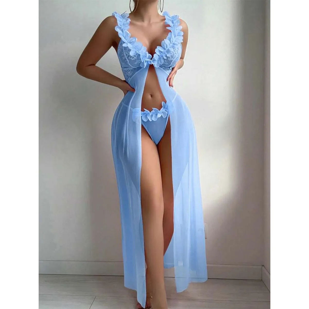 European American Women's Sexy Temptation Mesh Lace Three - Dimensional Floral Pastoral See - Through - Zeprah