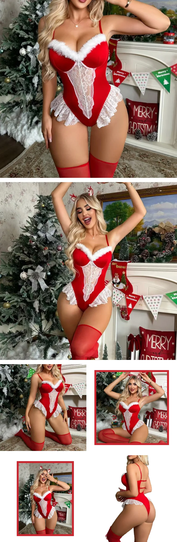 European and American Christmas Cosplay Uniform White Lace Stitching with Tennis Socks Sexy One-piece Lingerie Suit