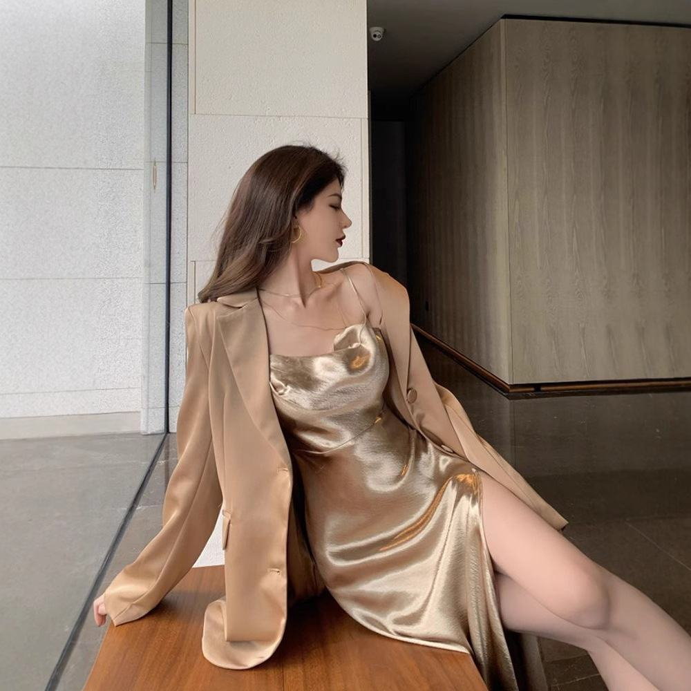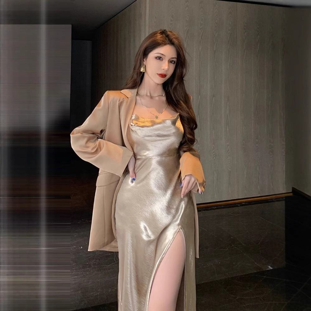 This stunning piece defines sophistication with its silky, shimmering satin fabric that drapes elegantly over your figure. It features a chic cowl neckline supported by delicate spaghetti straps and flows down into a flattering maxi-length skirt. A daring high side slit adds a touch of allure and ensures graceful movement. Perfect for formal events, evening parties, or feeling utterly luxurious at home.