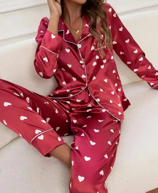 Heart-Shaped European American Style Autumn Silk Ultra-thin V-Neck Full-Length Women's Long-Sleeved