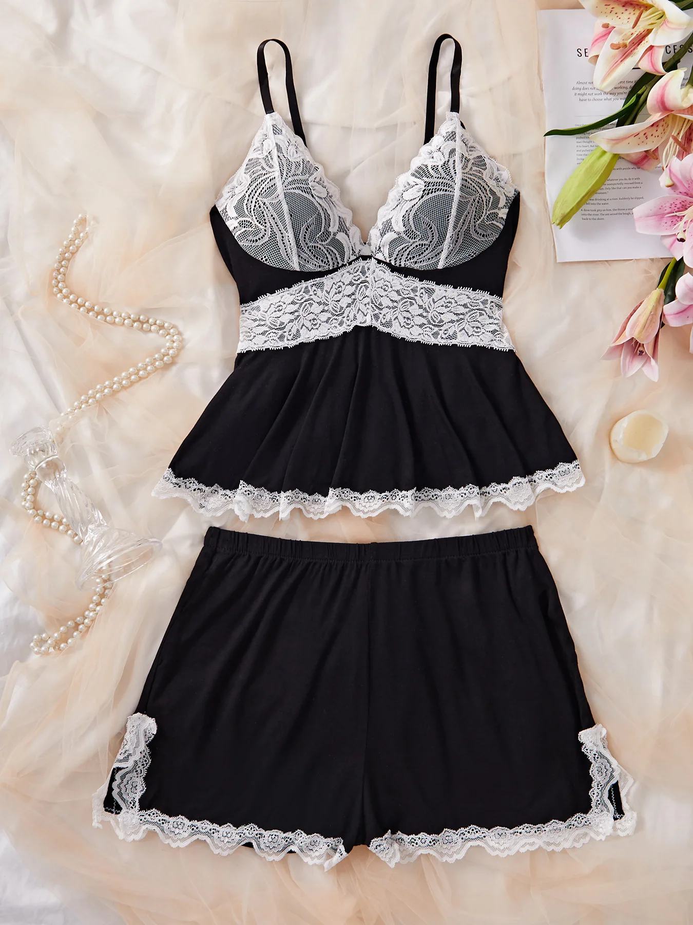 Hot-selling European American Style Lace Sexy Women's Suspender Shorts Two-piece