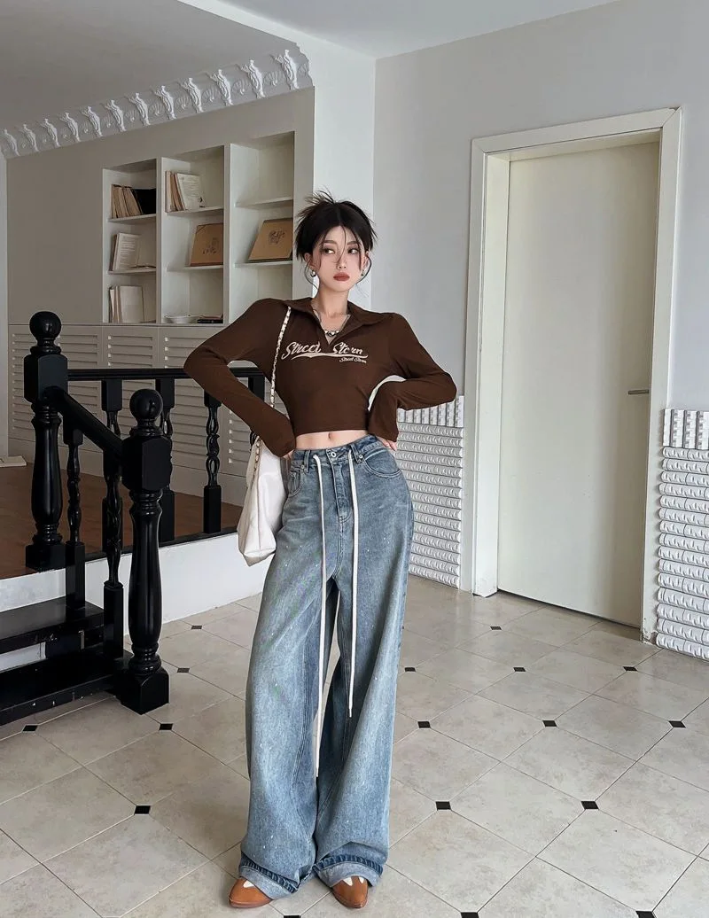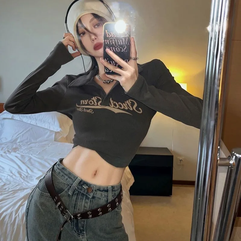 Polo Collar Long Sleeve Base Shirt Irregularity Long - sleeved Top Slim - fit Long Sleeve T-shirt - Zeprah