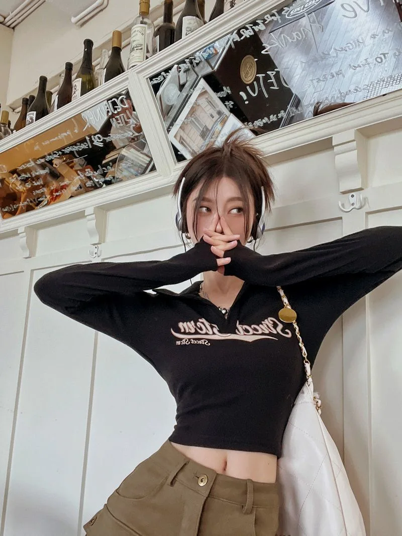 Printed round neck slim short T-shirt casual all-match ins cute age-reducing top pure American hot girls letter print