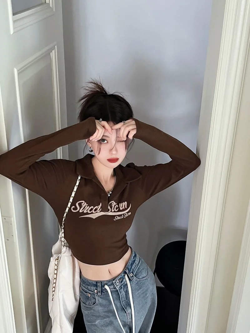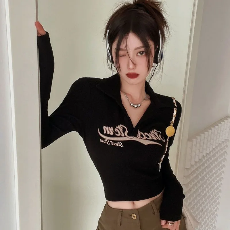 Polo Collar Long Sleeve Base Shirt Irregularity Long-sleeved Top Slim-fit Long Sleeve T-shirt