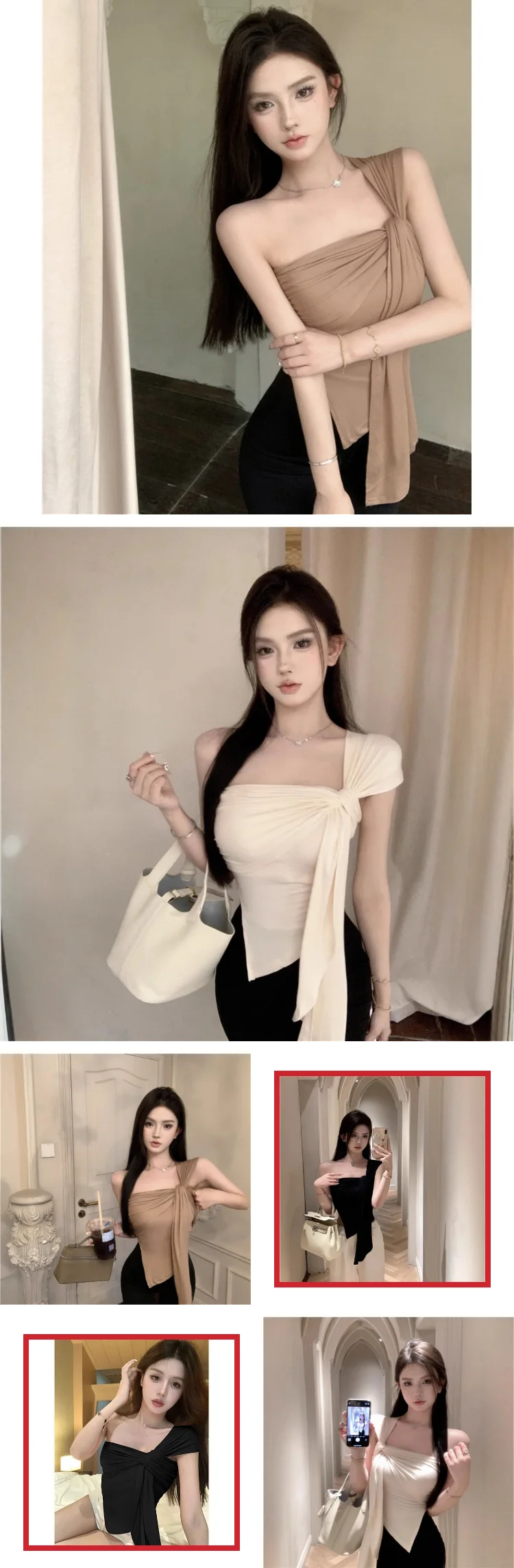 Pure Spice Girls Short Irregular Shoulder Women's Camisole Summer New Slim-fit Pleated Niche Top for Outer Wear
