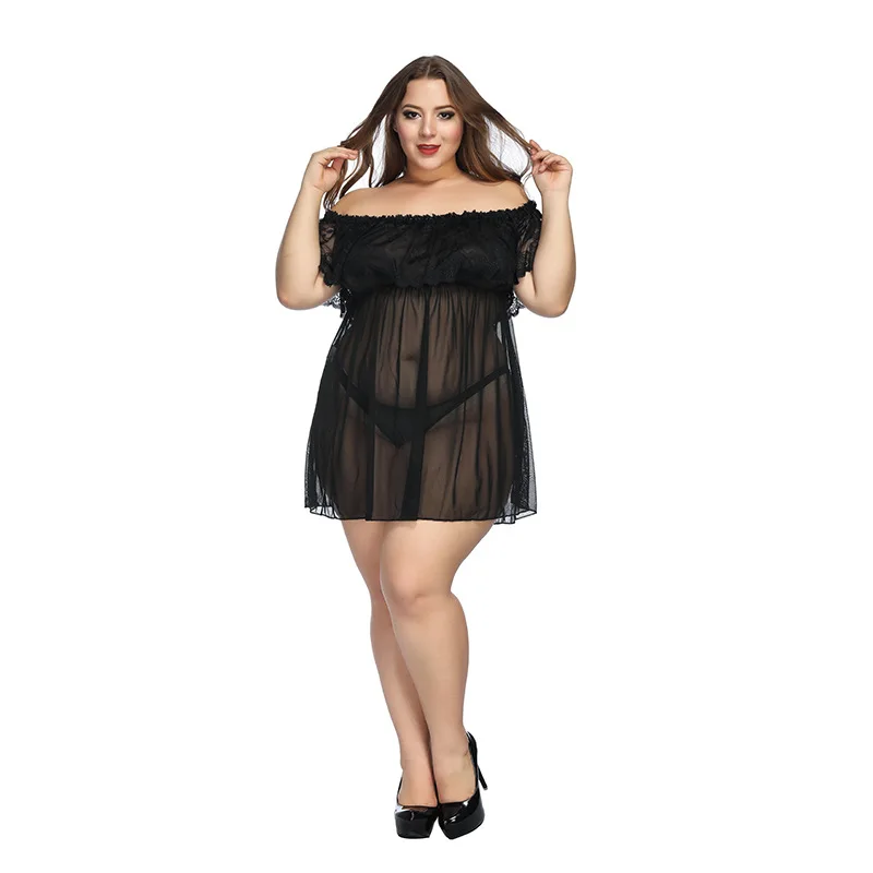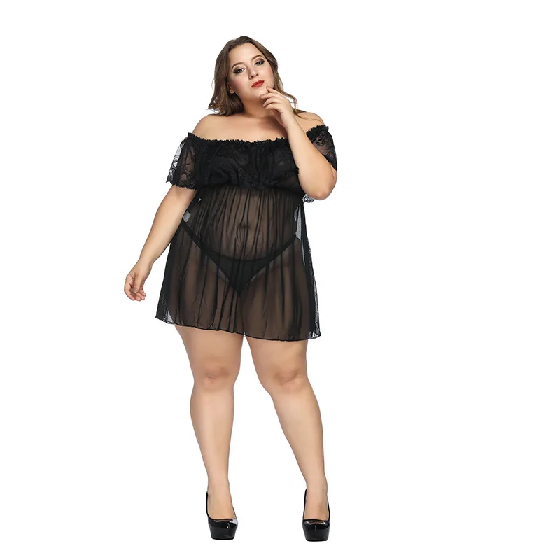 Sexy Lace See - through Plus Size Polyester Nightdress Off - shoulder Nightgown No Sleeves - Zeprah