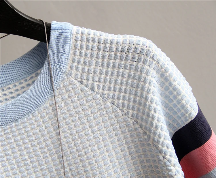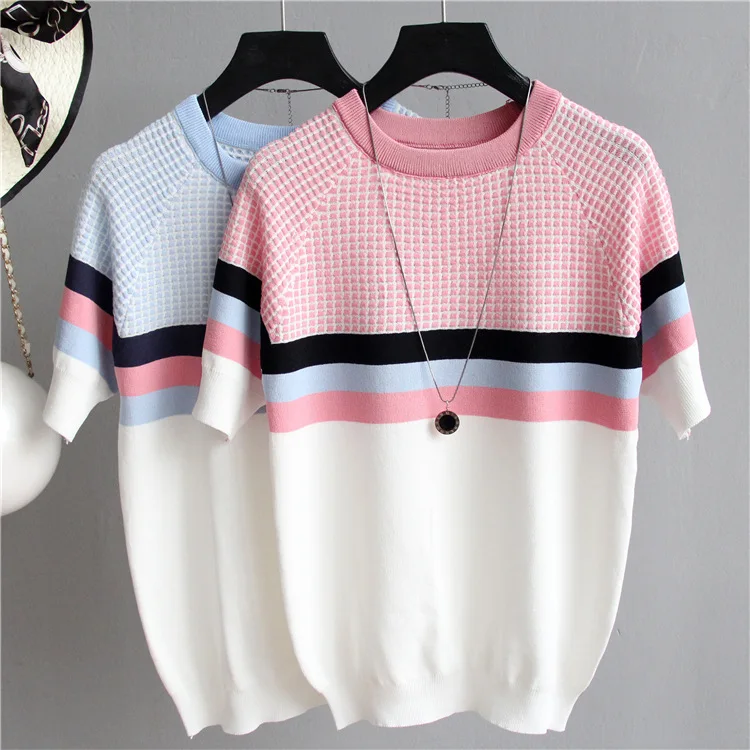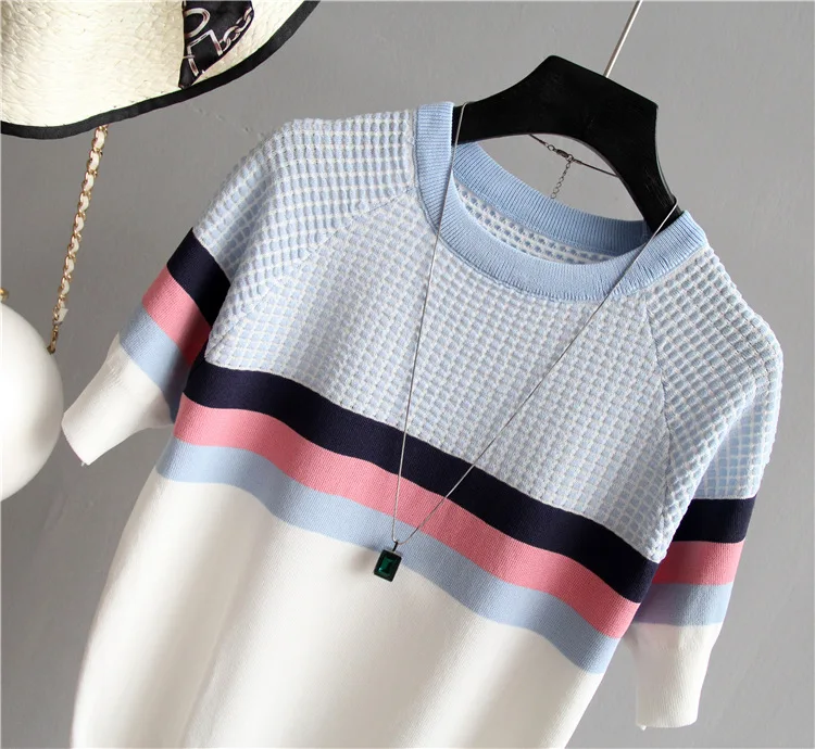 Streak Graphic Tee Ice Silk Knitting Tops for Women Splice Color Short-Sleeved Tee