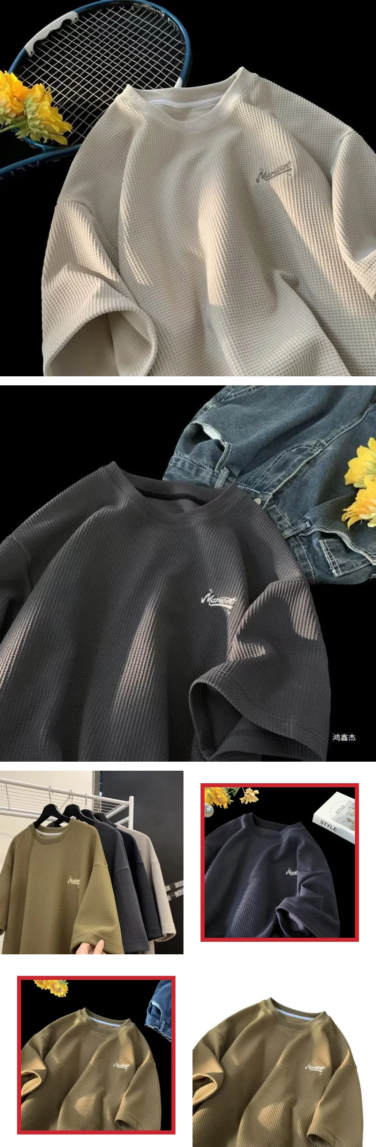 Summer American Style Waffle Men's T-shirt Retro Heavy Short-sleeved Trendy Brand Fashionable All-match Half-sleeve Clothes