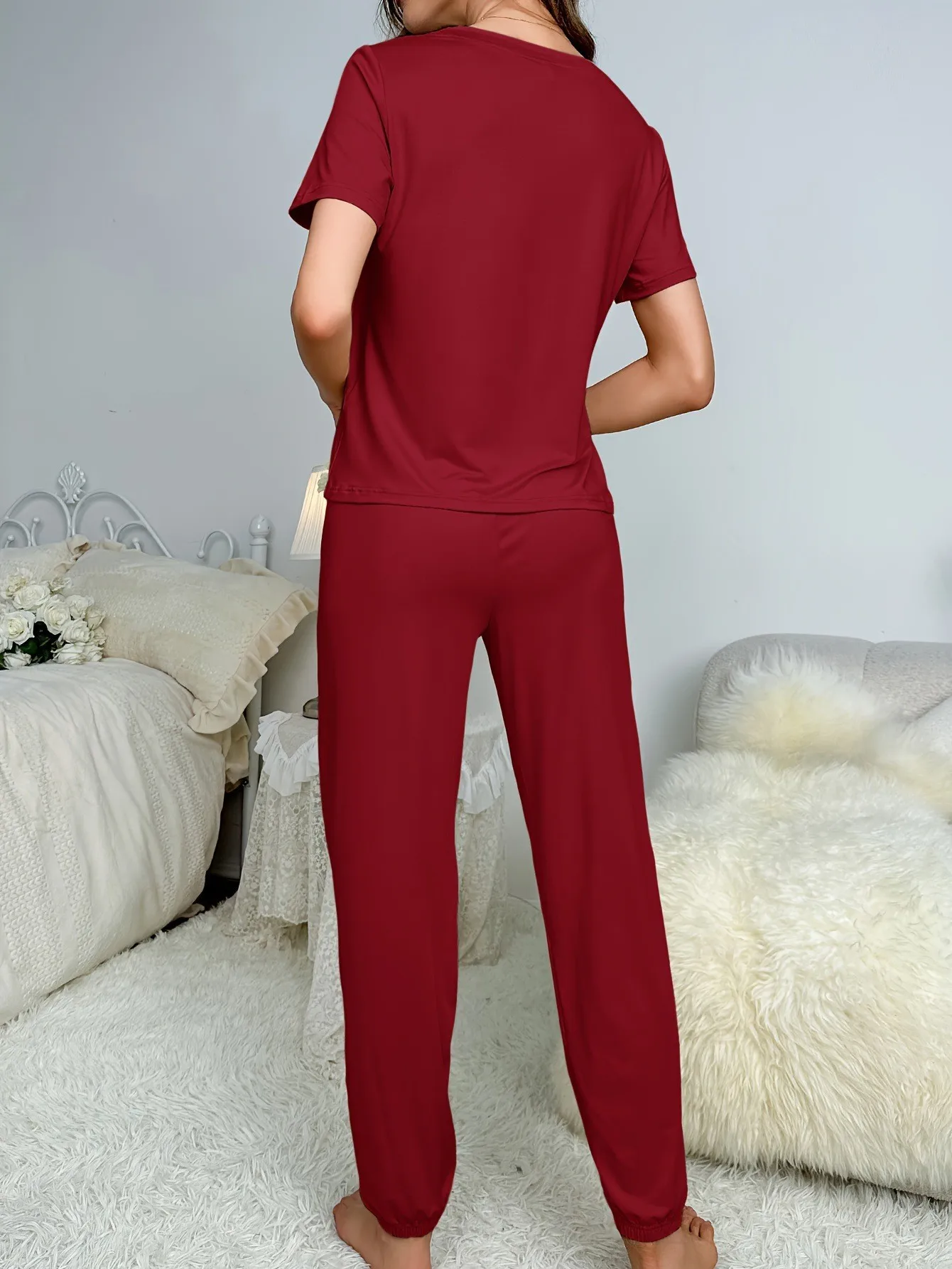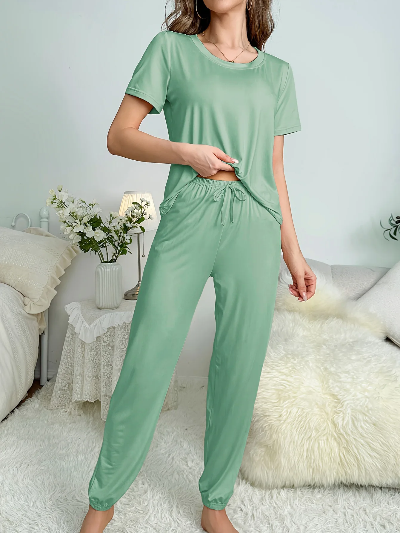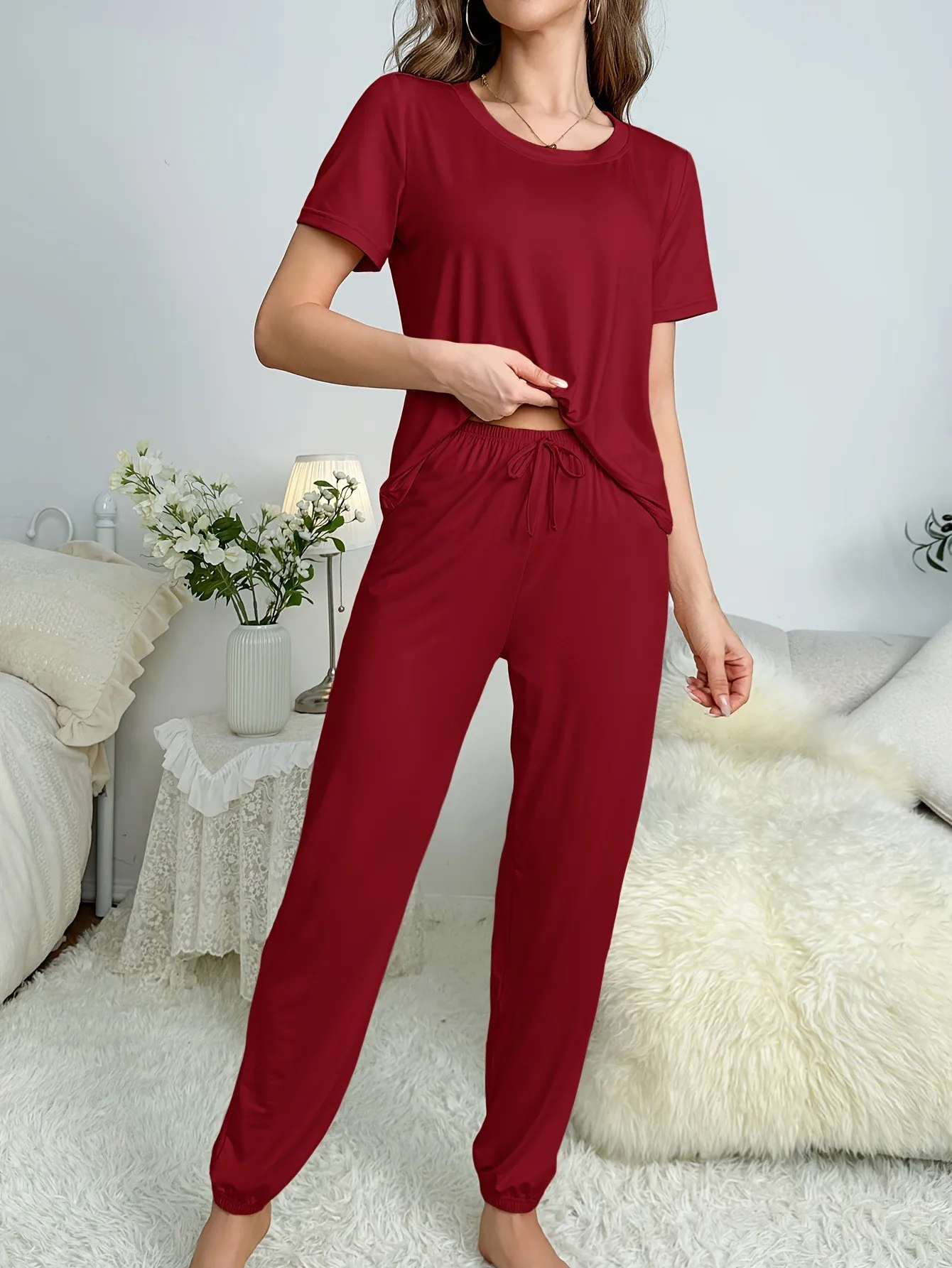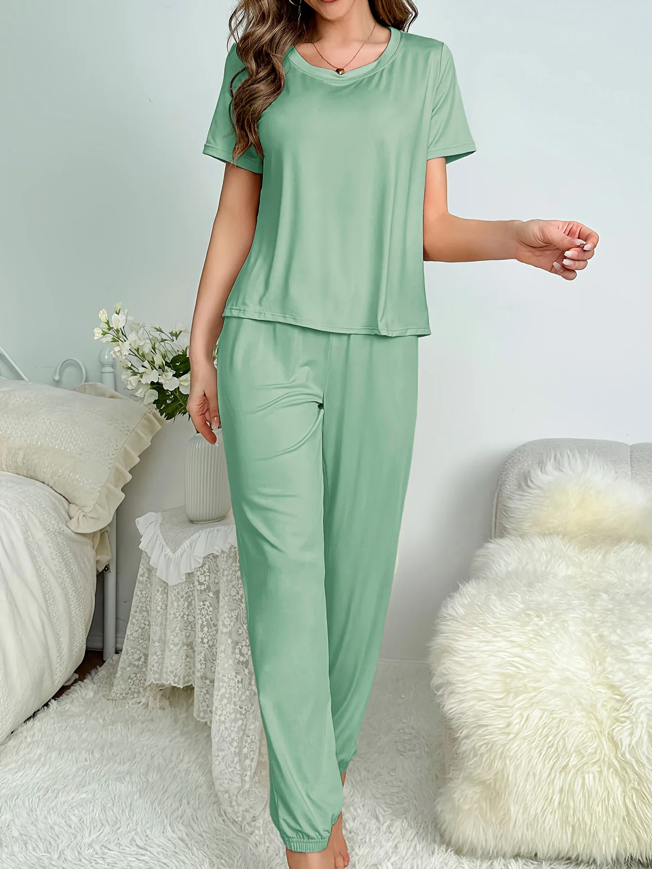 Women's Homewear Pajama Set Comfortable Casual Solid Versatile Stylish for Daily Outdoor Wear