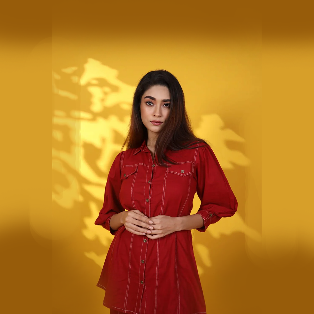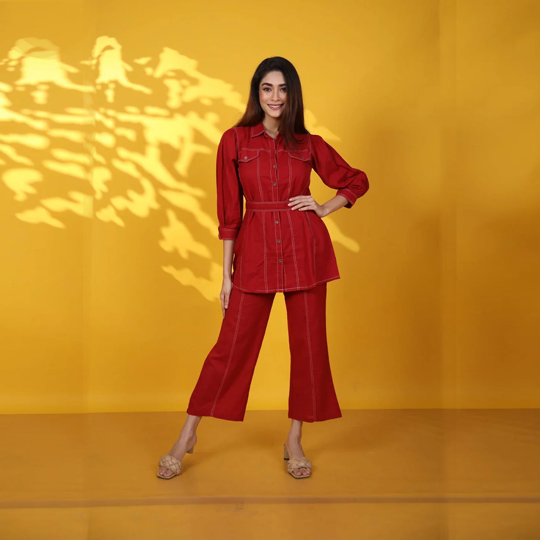 2pc Denim Cotton Style With BeltShirt Length 36Chest Size 20/21Trouser length 38