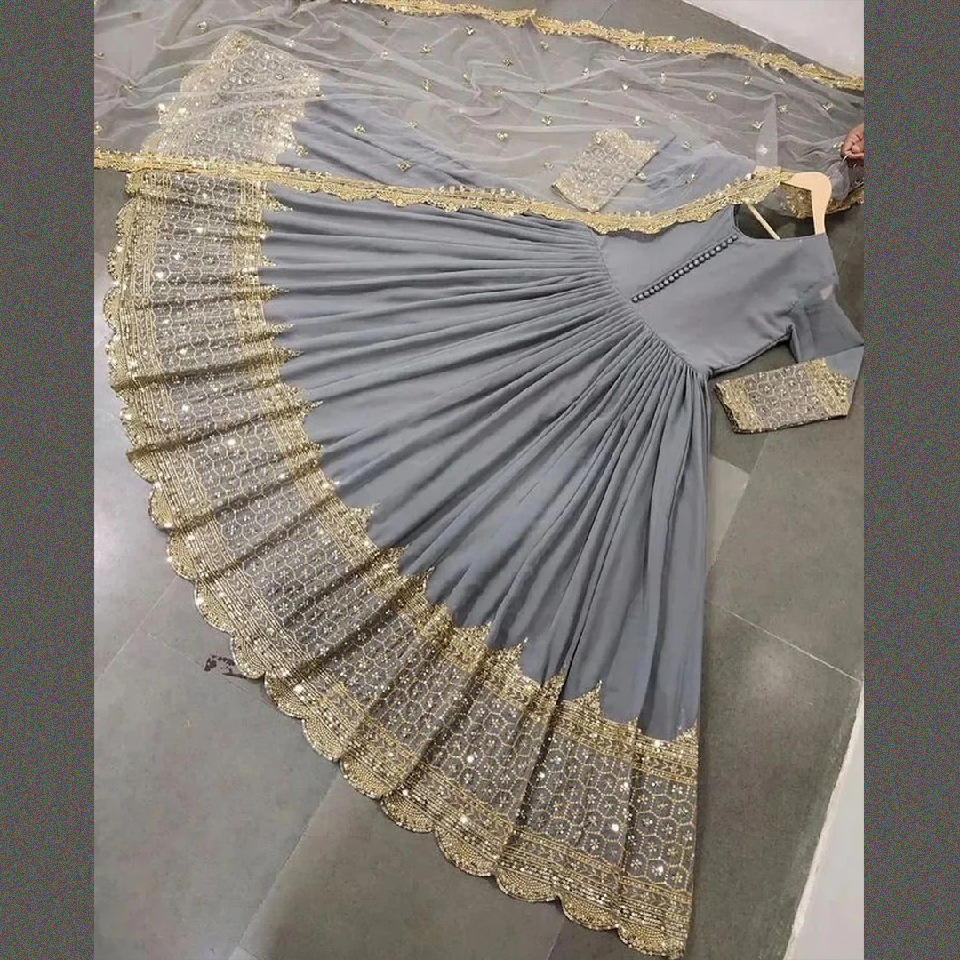 *New Arrival 3pc  sequence Embroidered 3pcMaxiTrouserDupatta  MediumChest 20/21XL chest 23Length 52Trouser Length 37sequence Embroidered