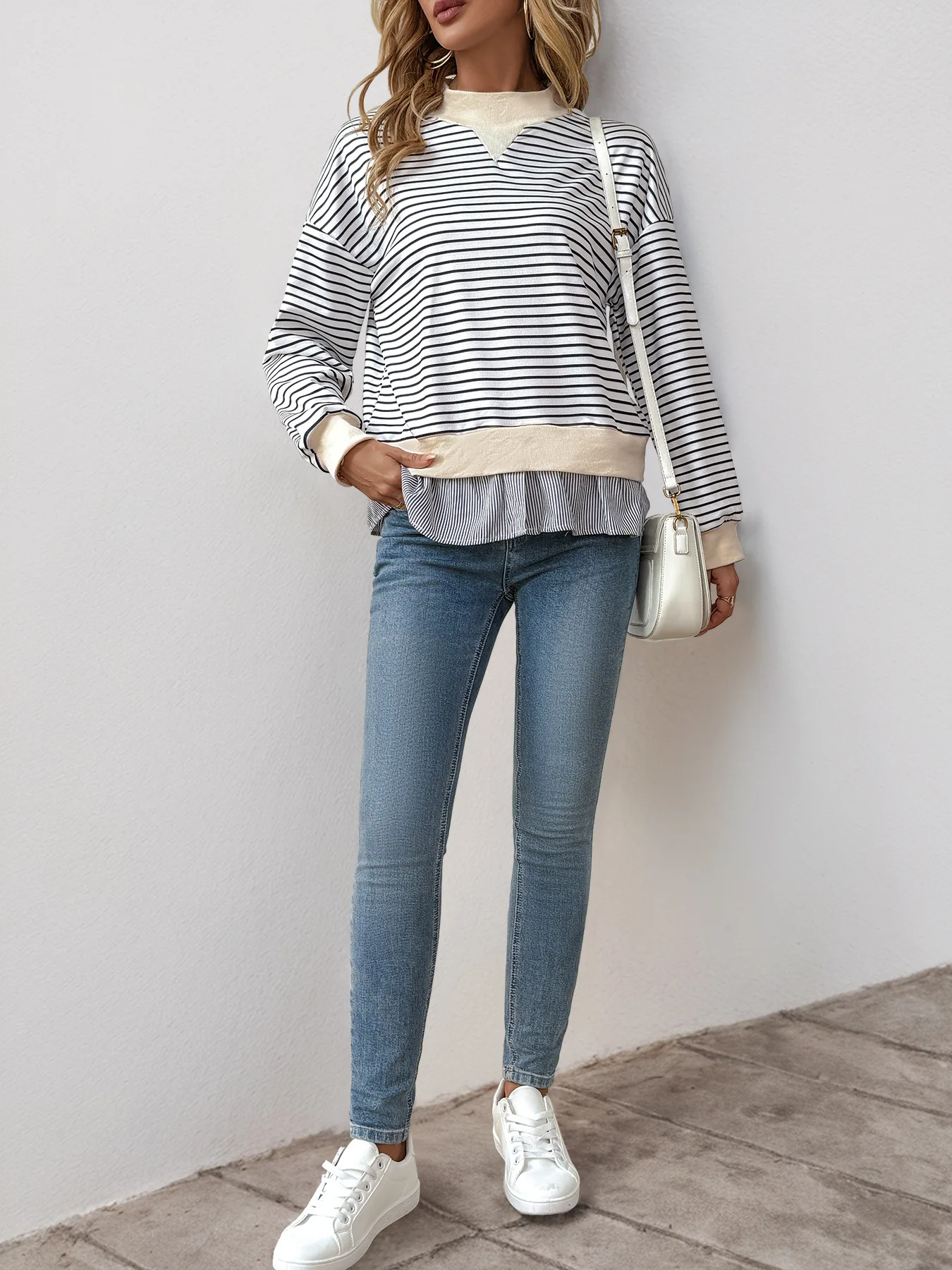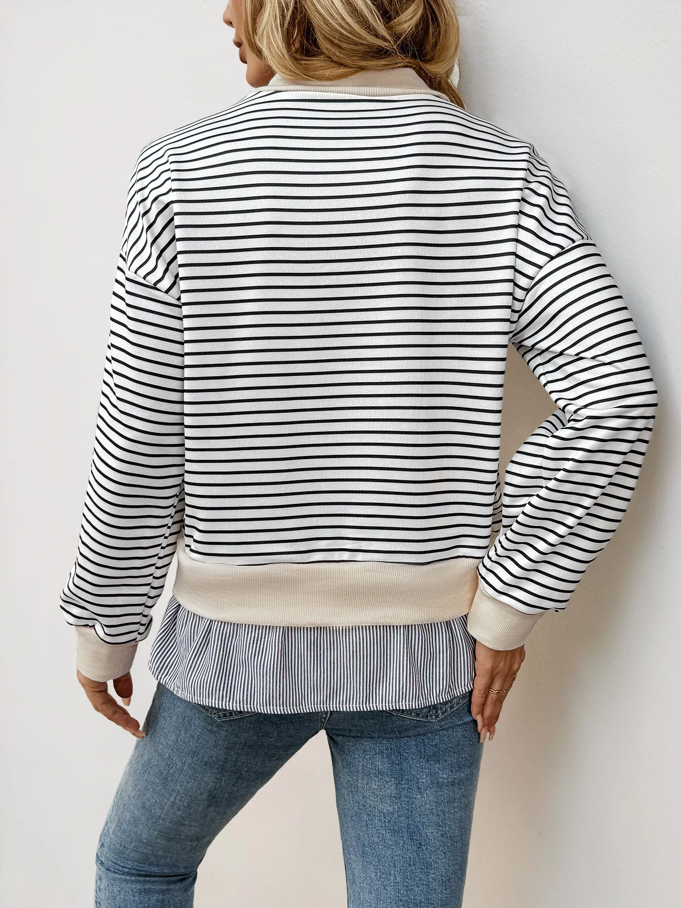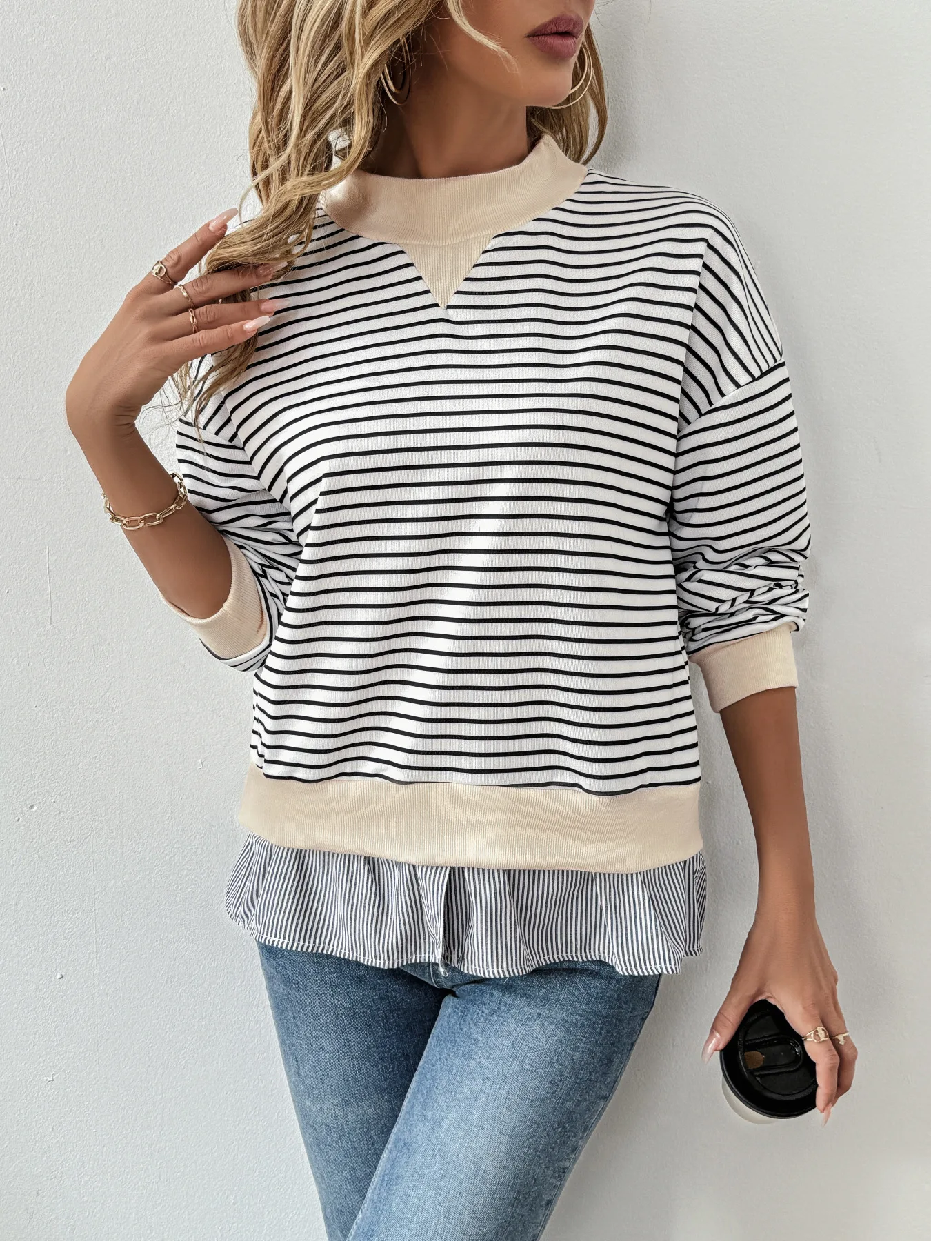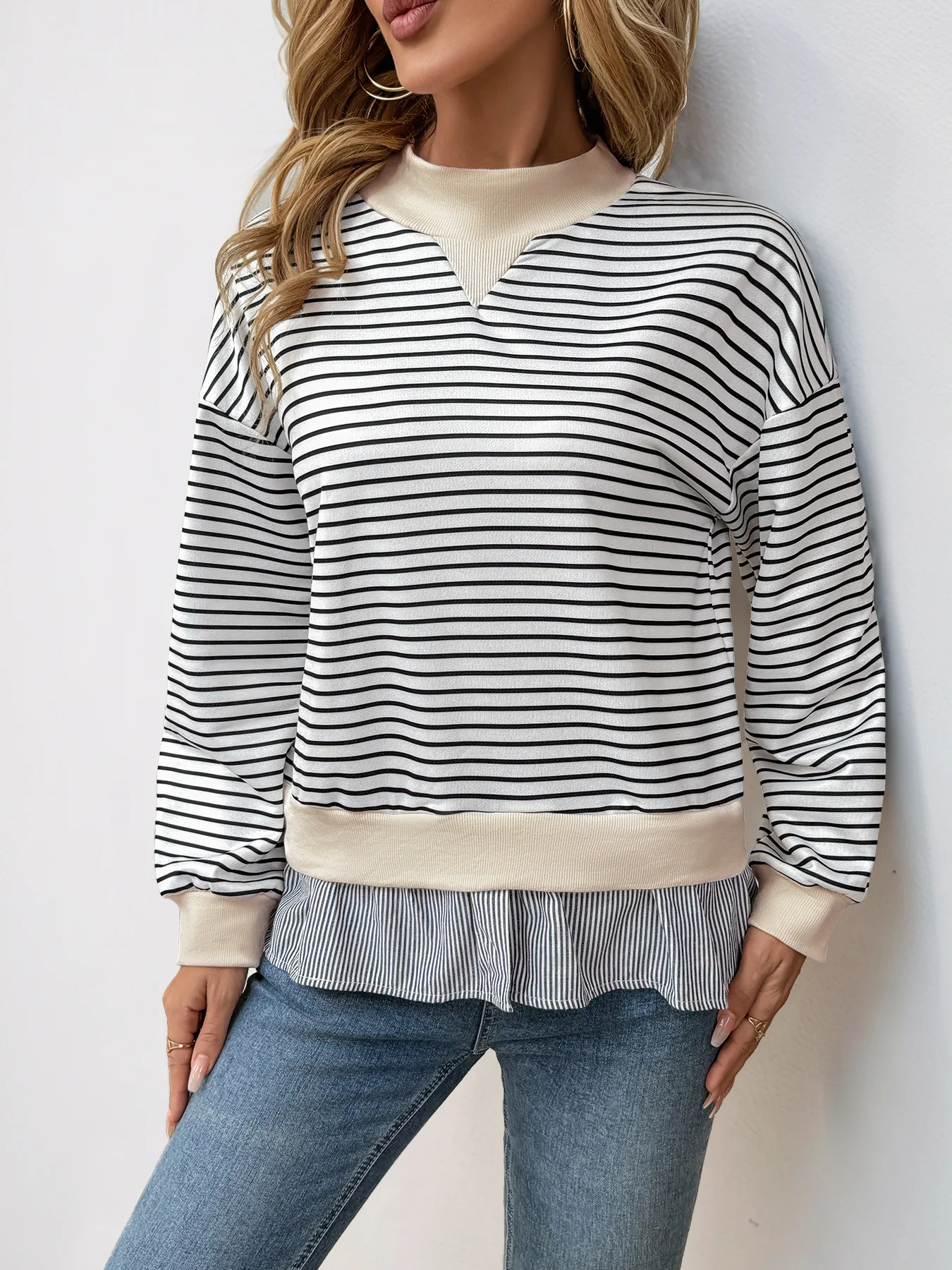 Autumn Women's Casual Date Commuting Half High Collar Loose Striped Sweatshirt - Zeprah