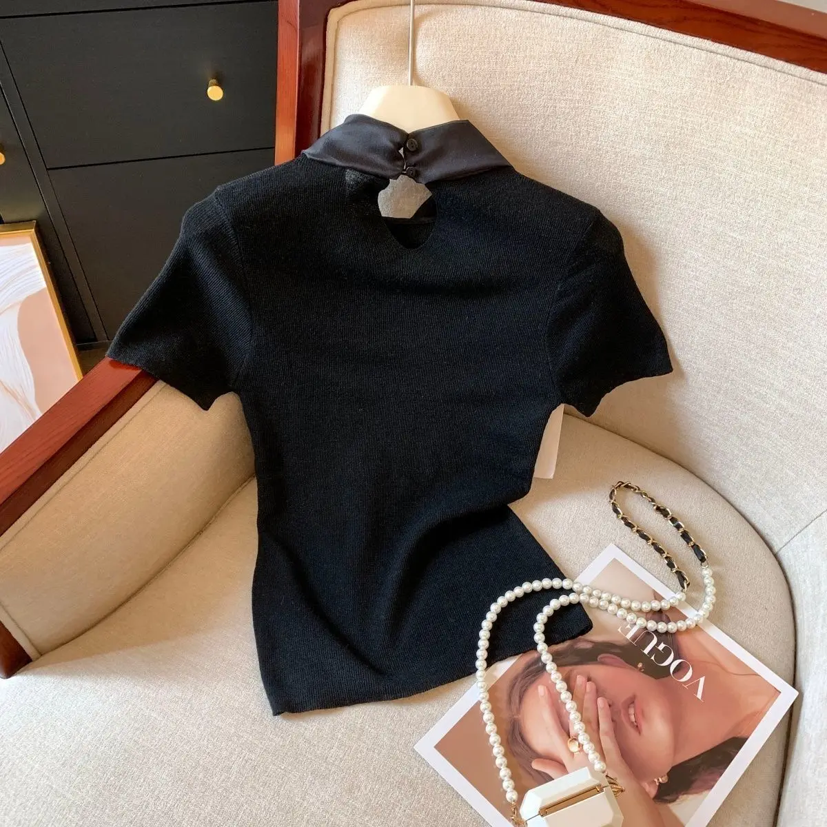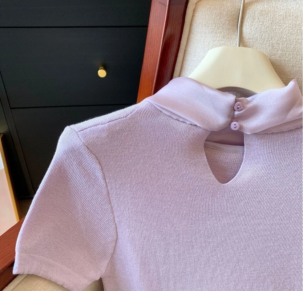 Bow Made of Lacing Short Sleeve Top Elegant Fashionable Tops for Women Simple Best Sale T-shirt for Women