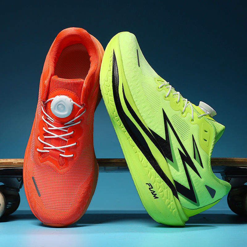 Breathable Ultra Light Knitted Mesh Upper Neon Green Sports Sneakers Energy Return EVA Sole Closure Athletic Running Shoes