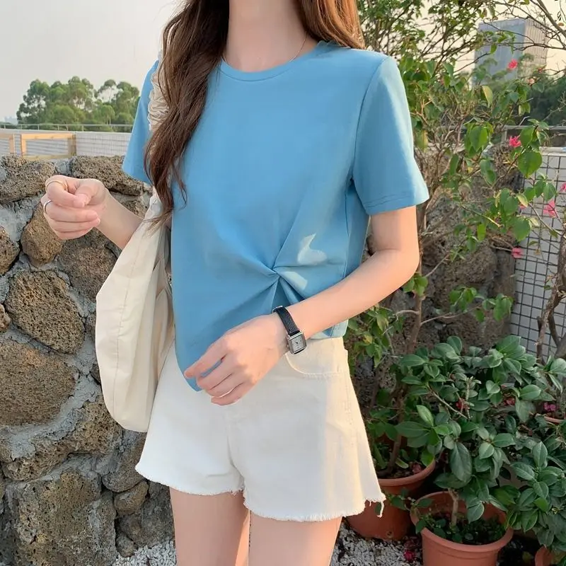Pure Cotton T-shirt Japanese and Korean Style Casual Short-sleeved T-shirt for Men and Women Solid Color Light Plate Mid-length