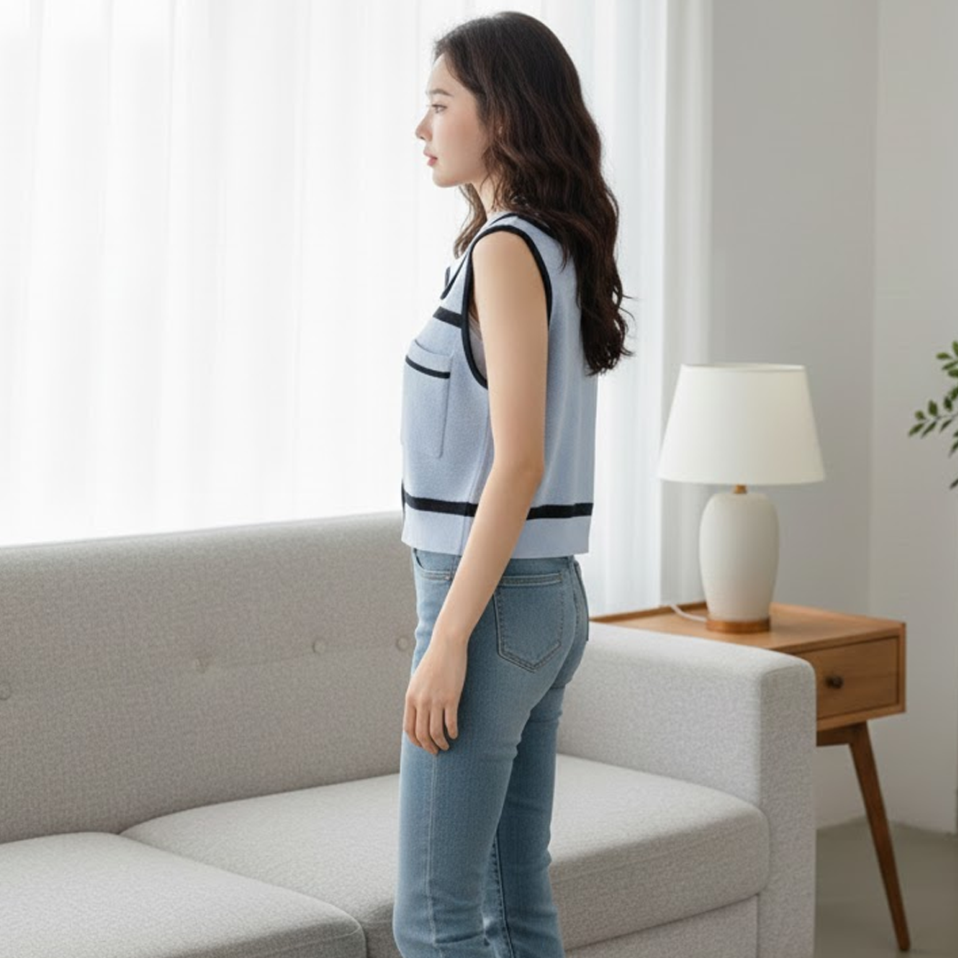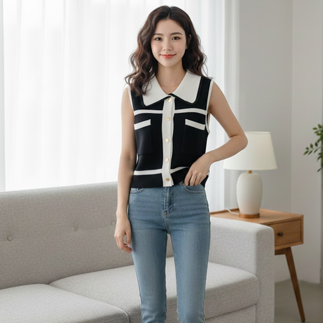 Color Contrast Tank Top for Women Single - breasted Cropped Turndown Going Out Tops - Zeprah