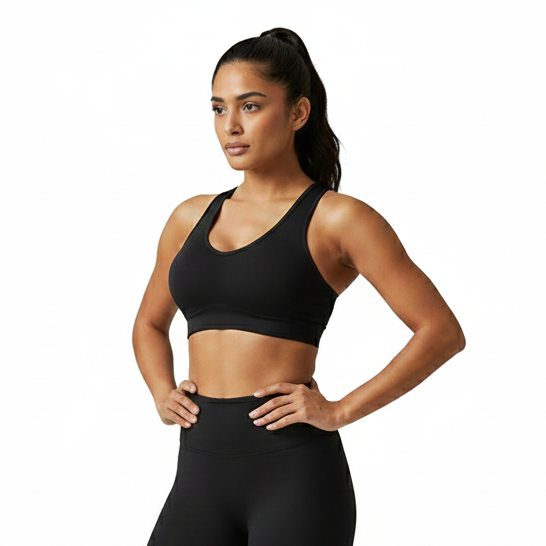 This is a versatile seamless sports bra designed for low to medium-impact activities like yoga, Pilates, and walking. It offers wire-free support and a smooth fit, ensuring ultimate comfort and flexibility during workouts. The deep V-neckline and adjustable straps make it ideal for layering under athletic tops or wearing alone. Crafted from a breathable, moisture-wicking fabric for a soft feel and all-day wearability .