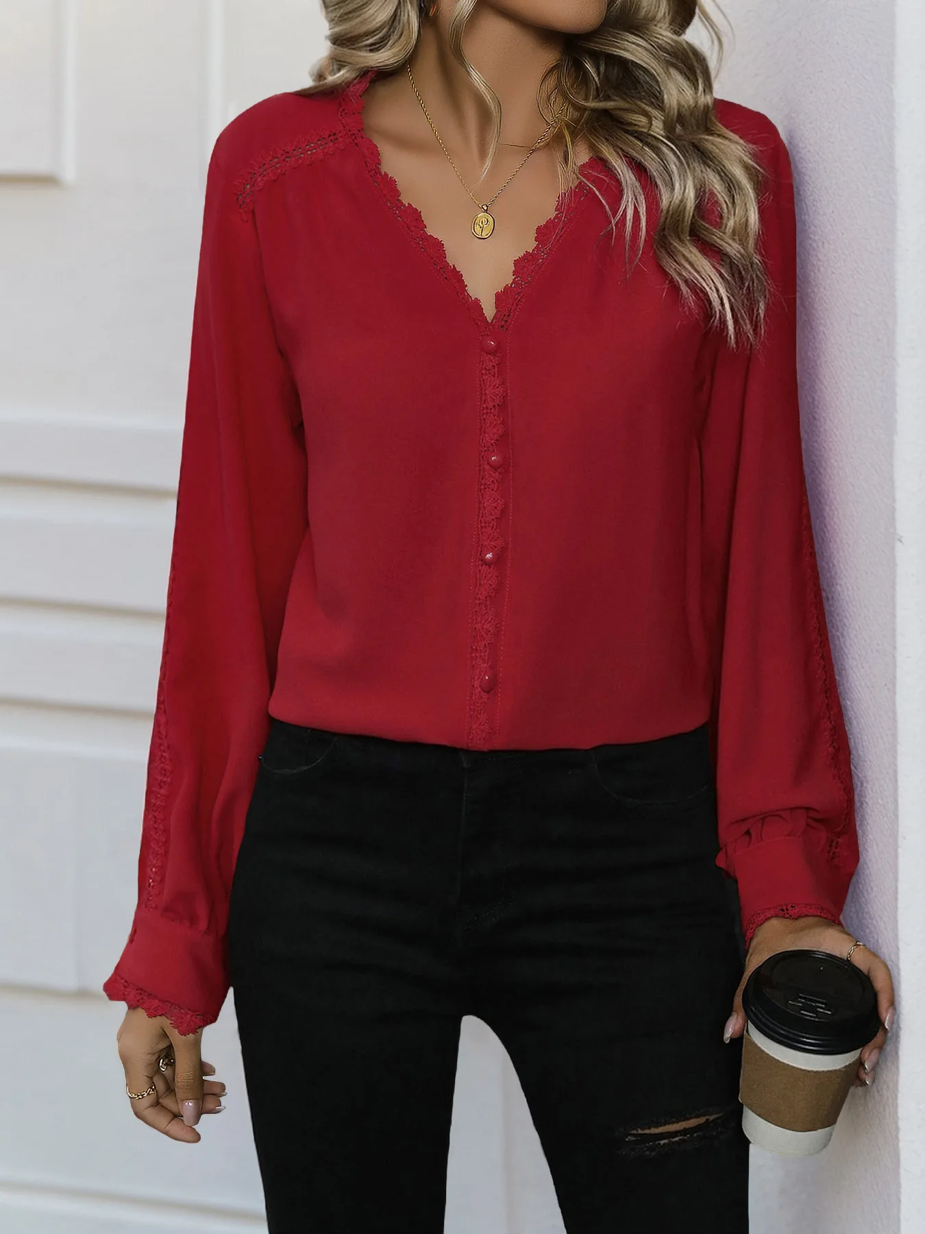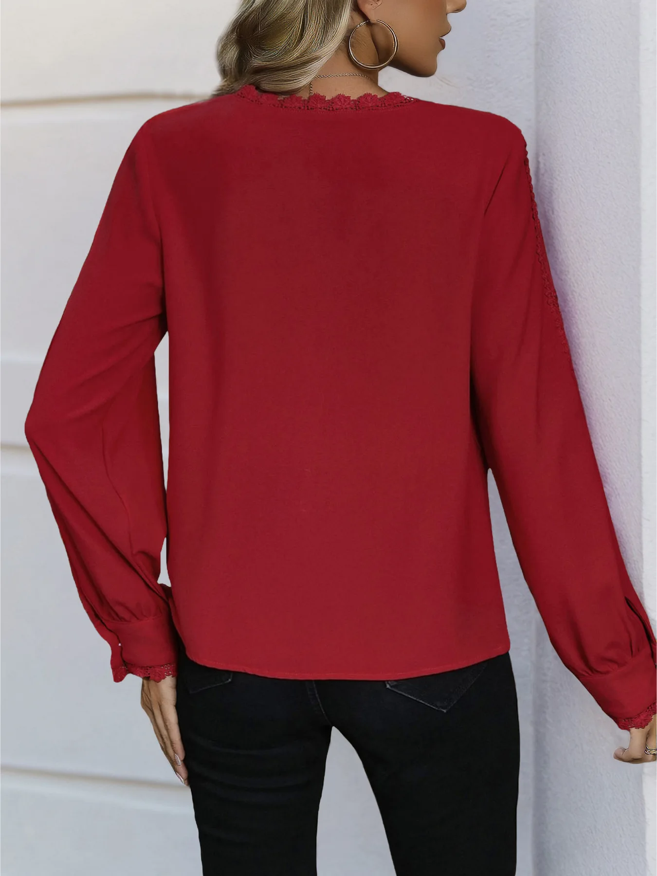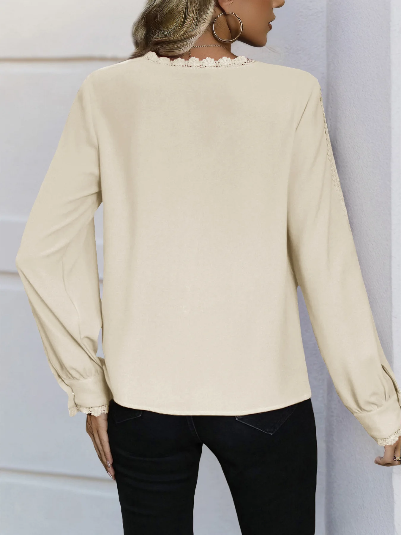 European American Autumn Cute Elegant Commuting Date Versatile Long-Sleeve Broadcloth Blouse