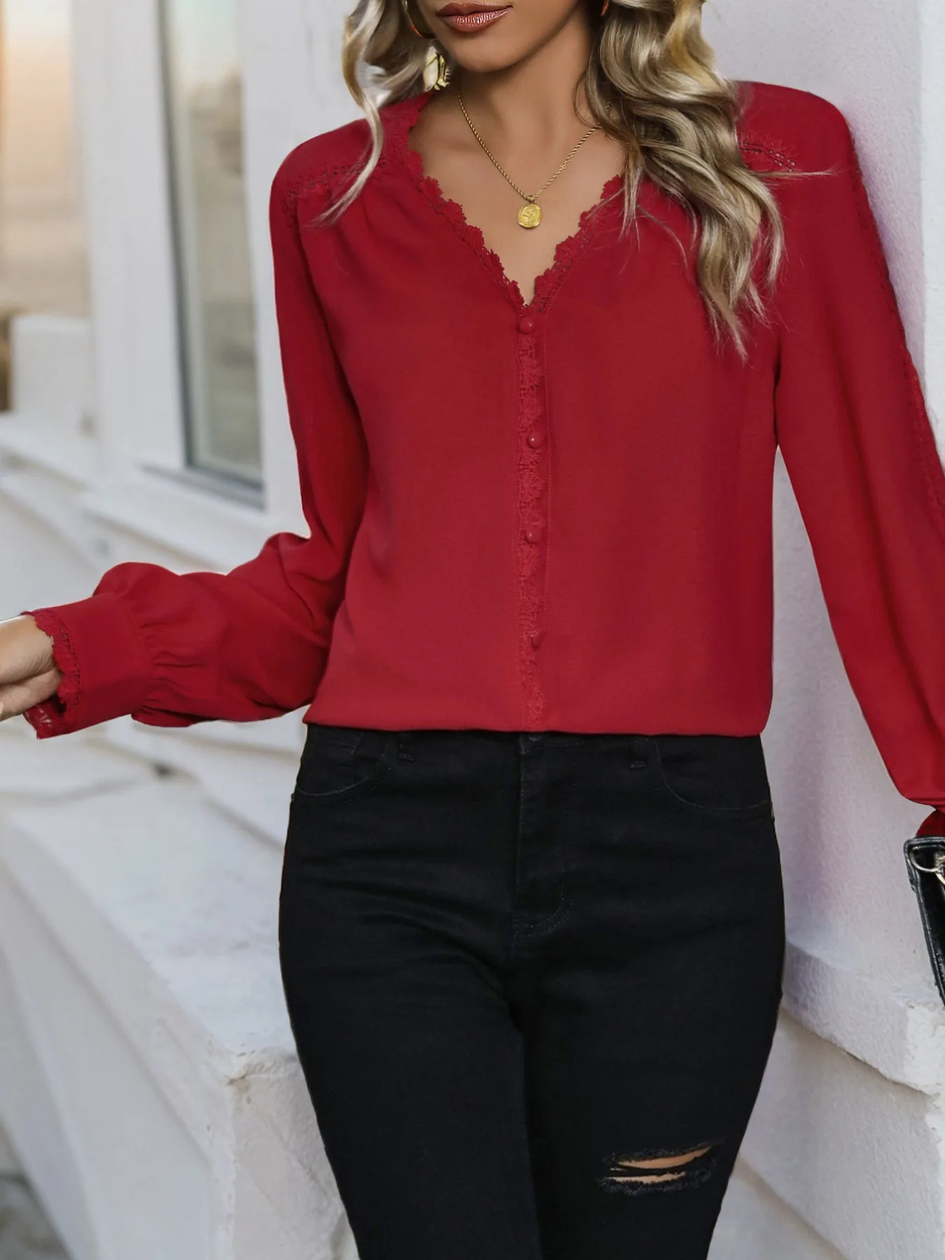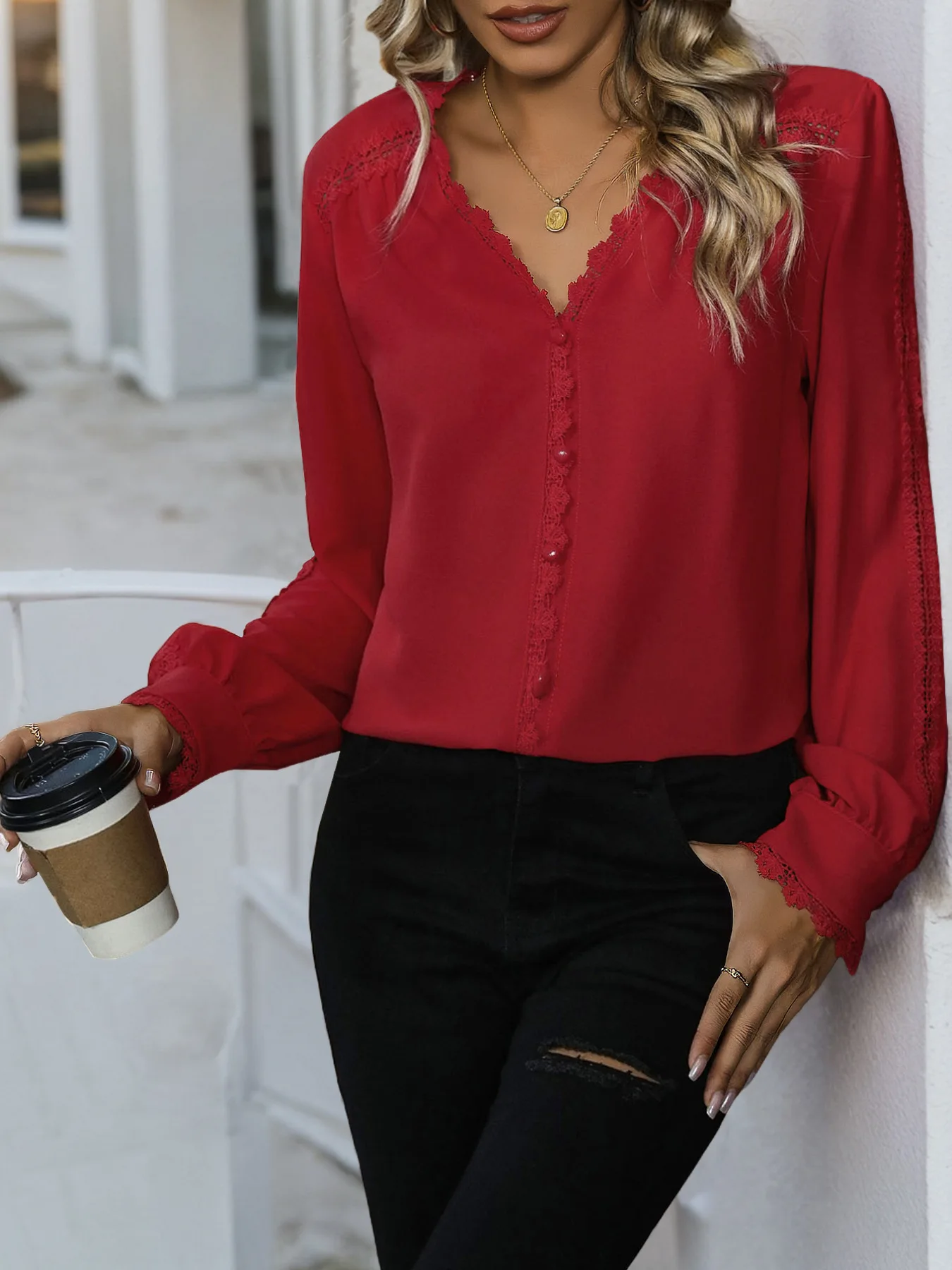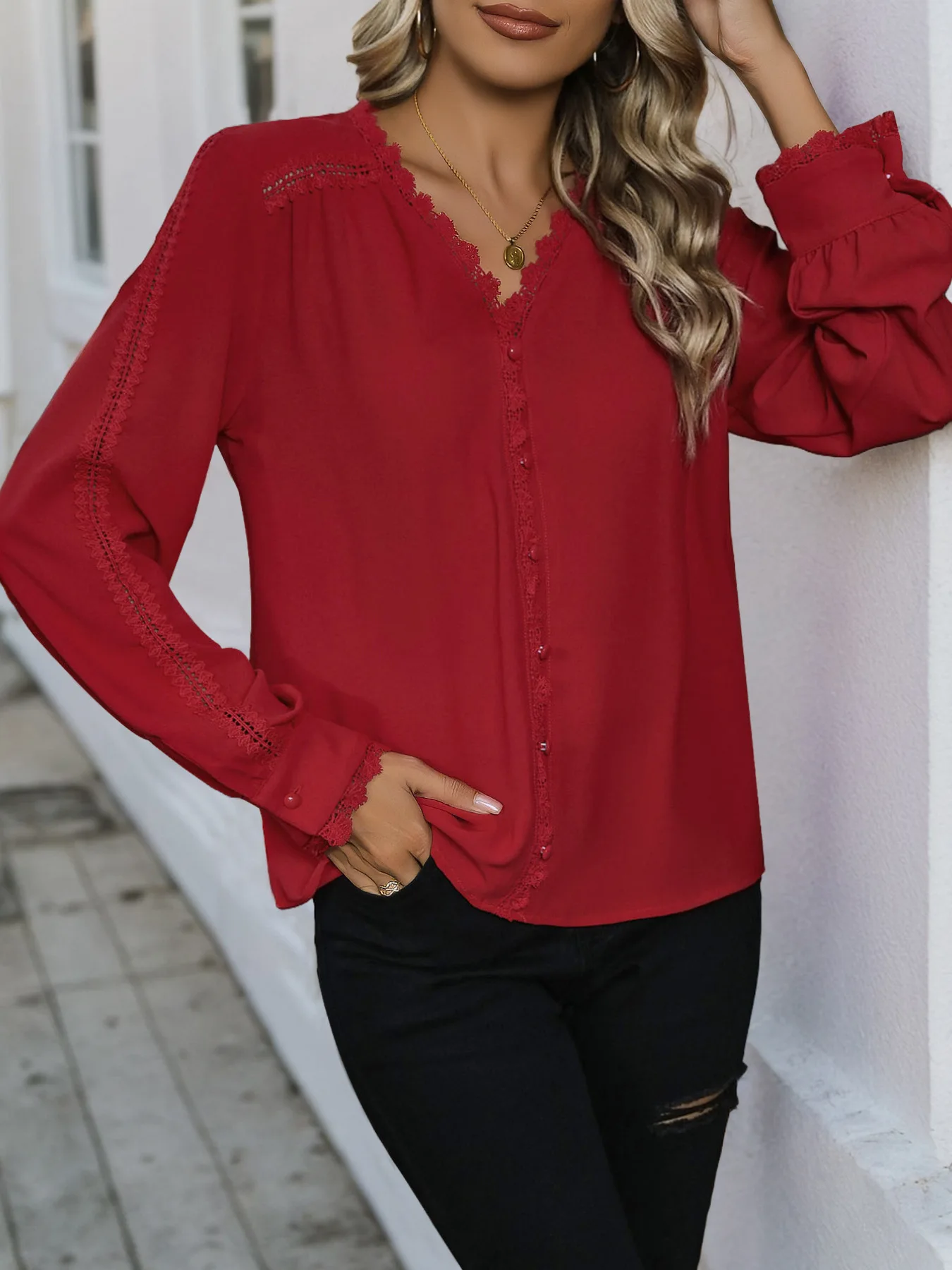 European American Autumn Cute Elegant Commuting Date Versatile Long-Sleeve Broadcloth Blouse