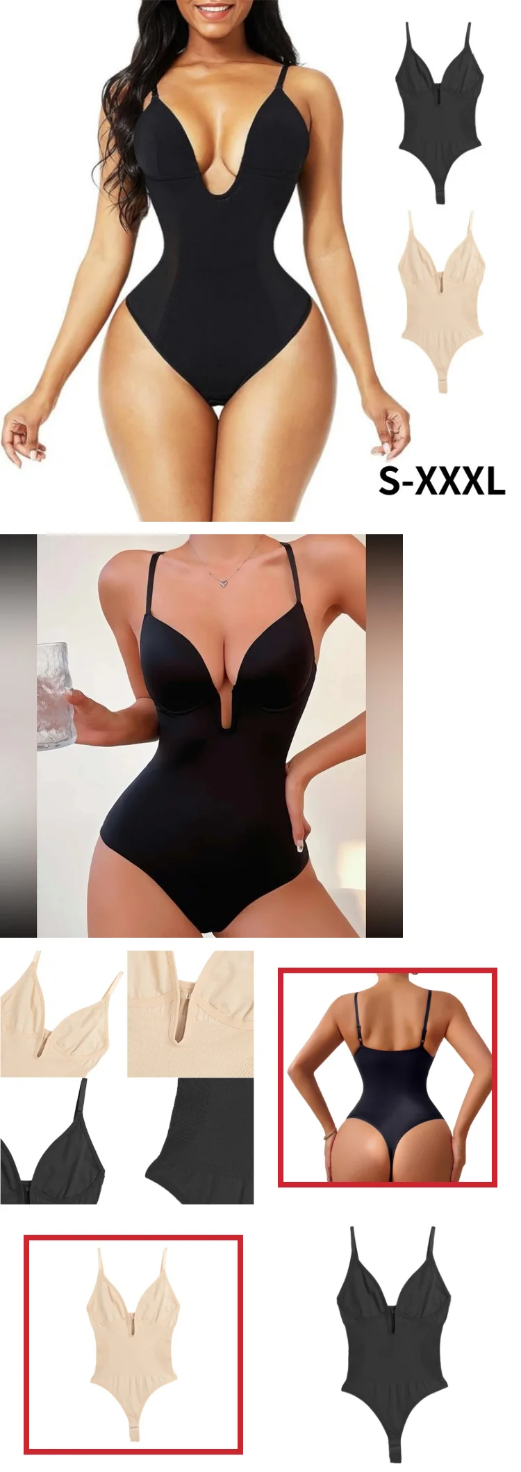 European and American Large Size Body Shaping Deep V Backless Waist Tights Buttocks Shaping Thong One - piece Women's Bodysuit - Zeprah