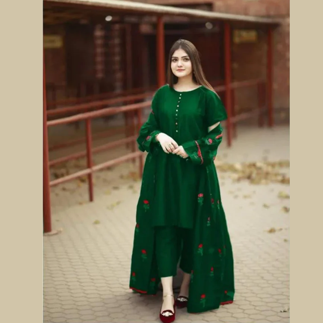 Flower Embroidered GownWith Sleeves Neck Lace 3Pc 48 Gown Length35 Shirt Length20 Chest Size 37 Trouser LengthFabric Silk ...