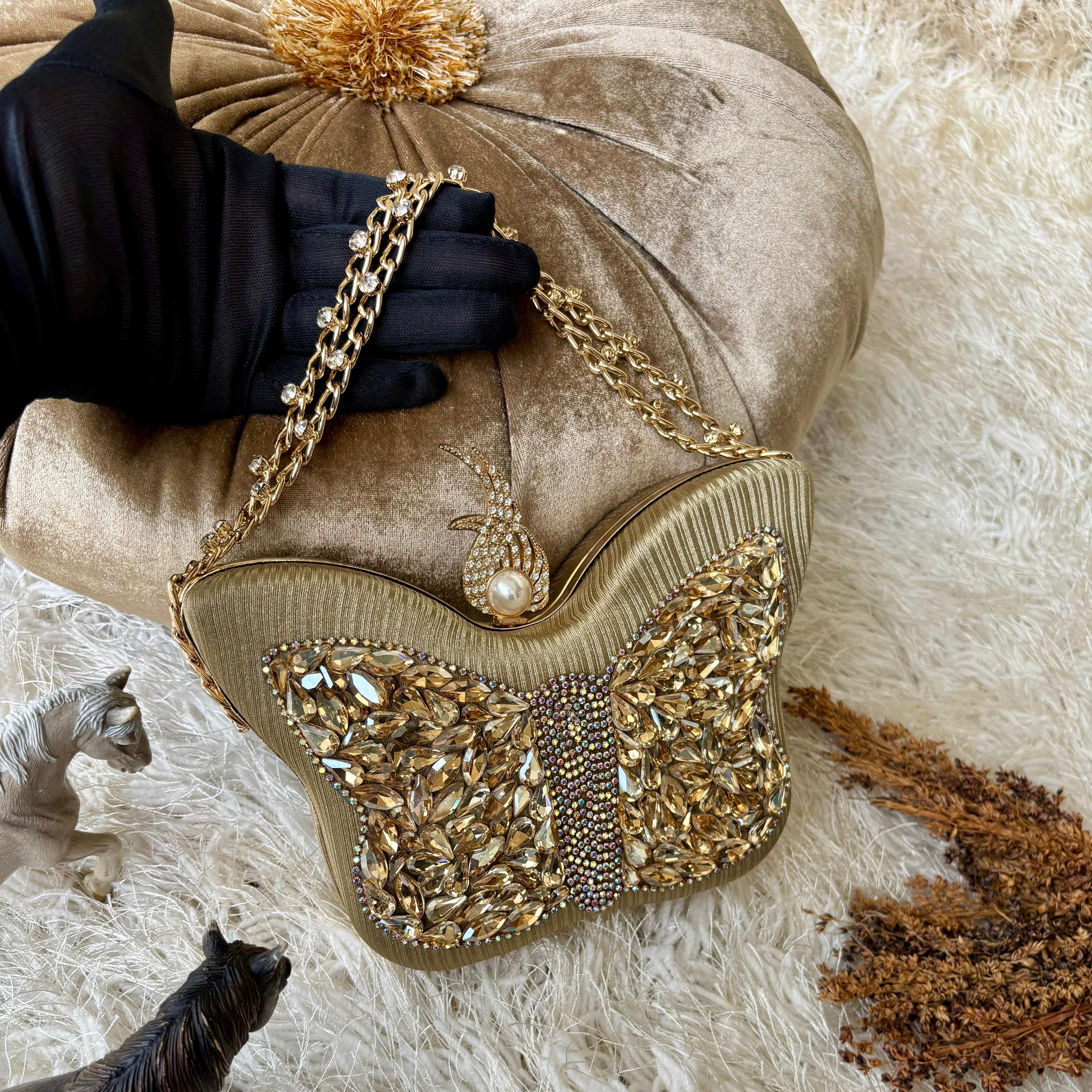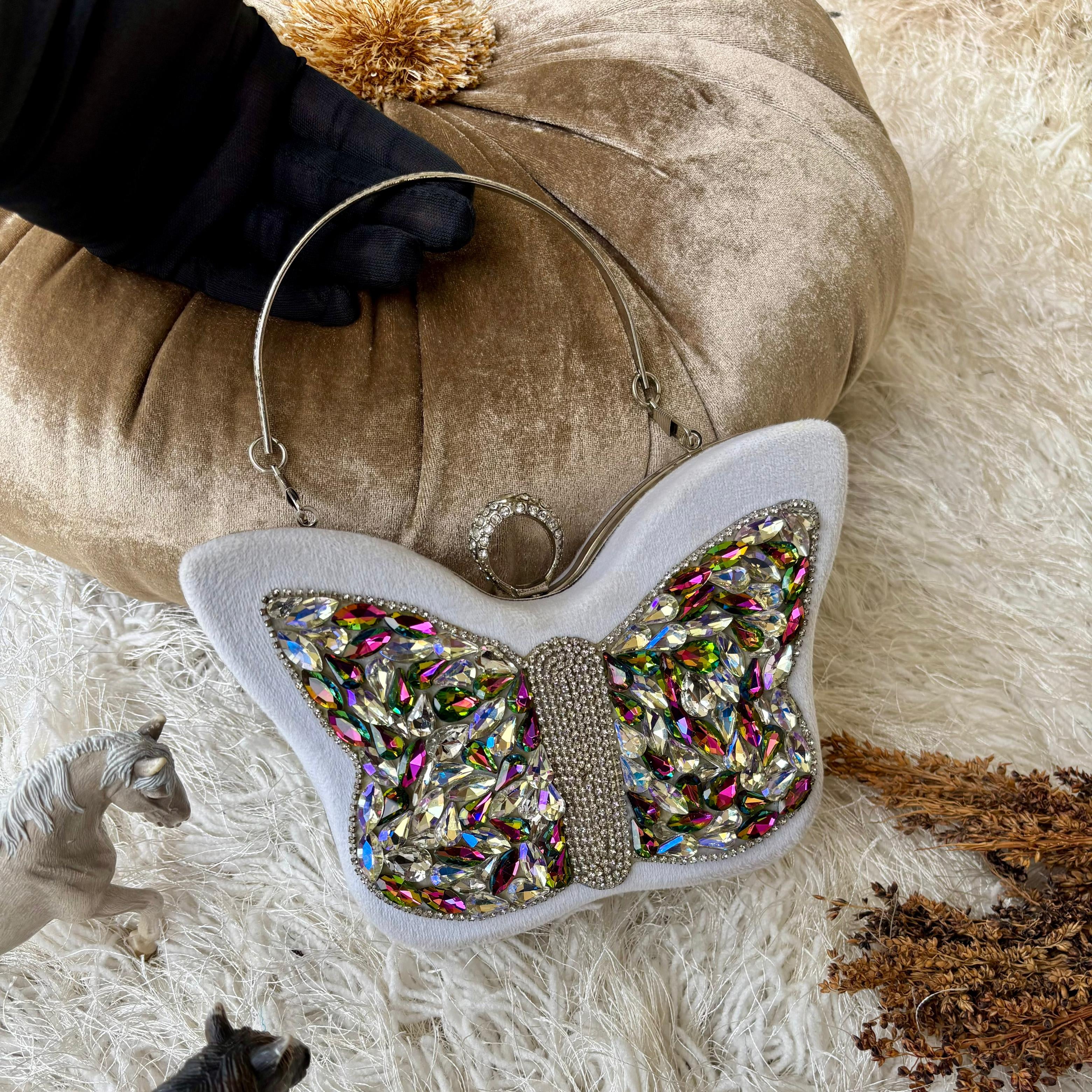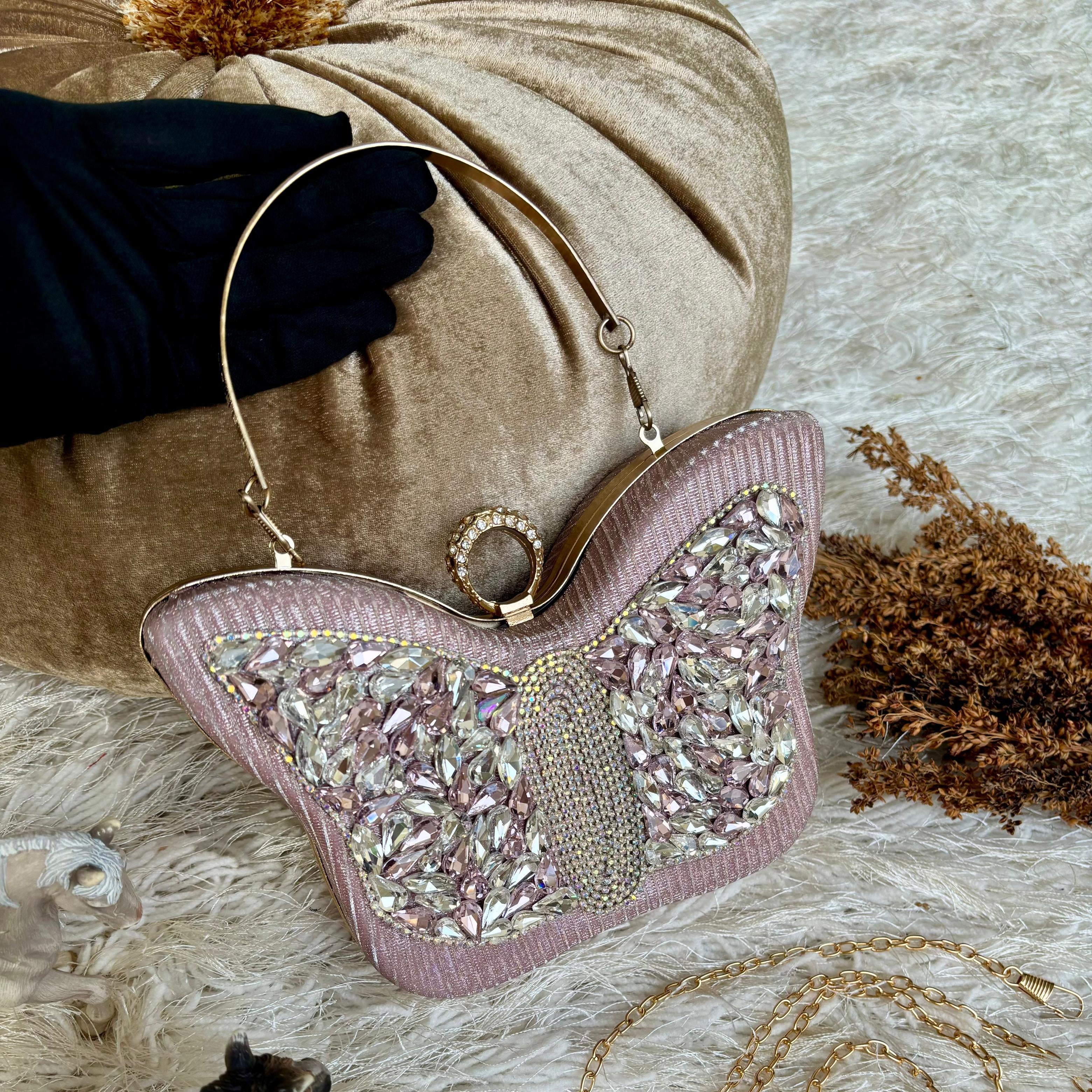 Elevate your evening wear with the exquisite HandCrafted Jewel Clutch, a true testament to artisanal craftsmanship. Each clutch in this collection is handcrafted in a striking butterfly shape, symbolizing grace and transformation.
