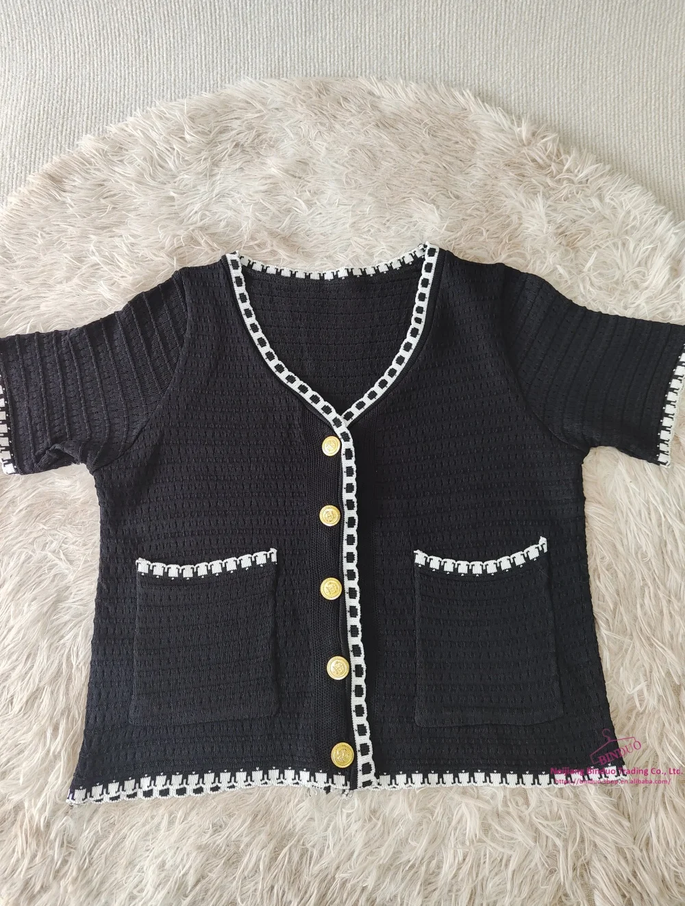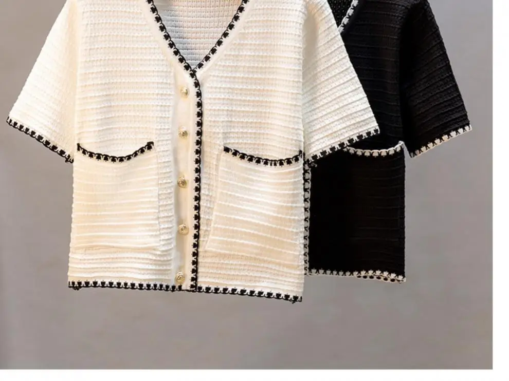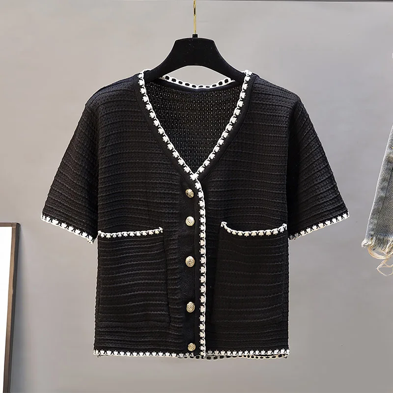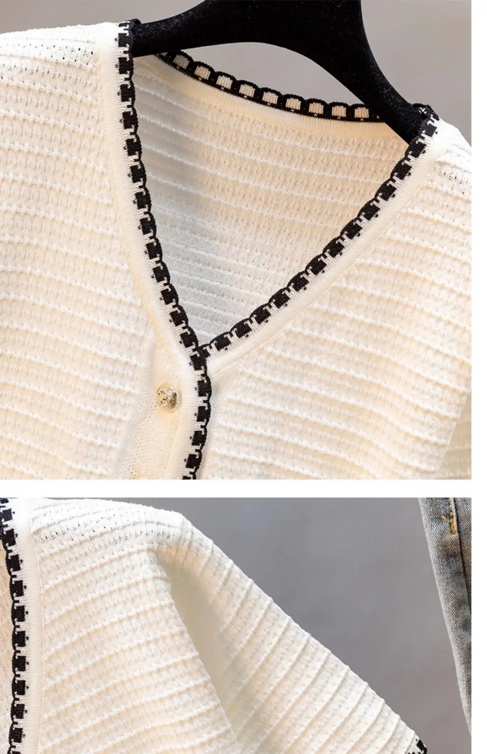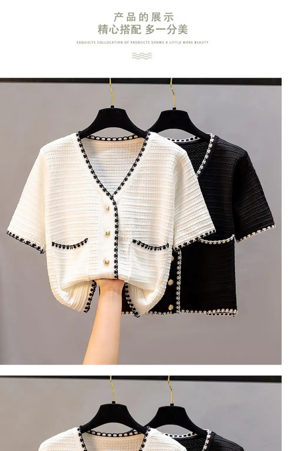 Ice Silk Graphic Tee V-neck Tops for Women Trendy Knitted Cardigan